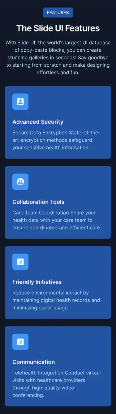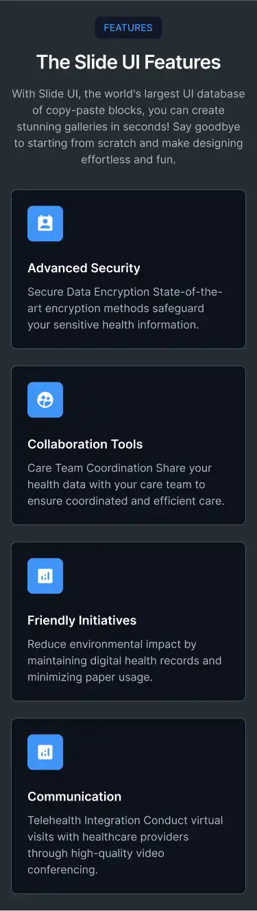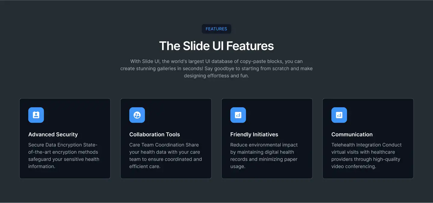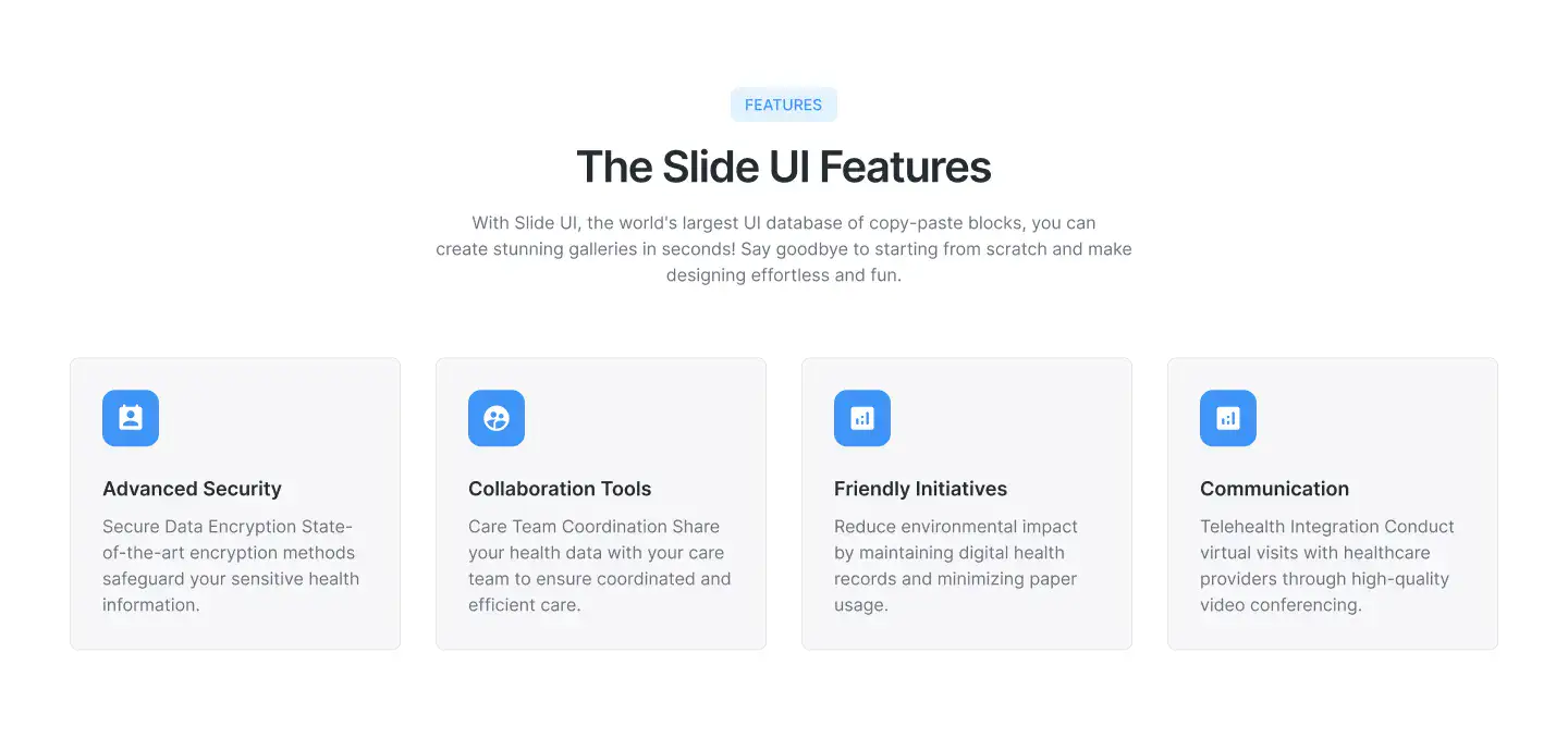 Grid or column-based layouts to highlight your best product features — fast, skimmable, and easy to reuse.
