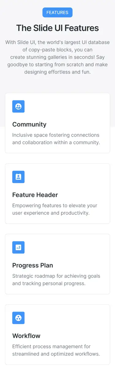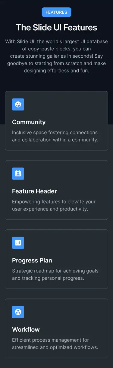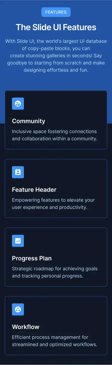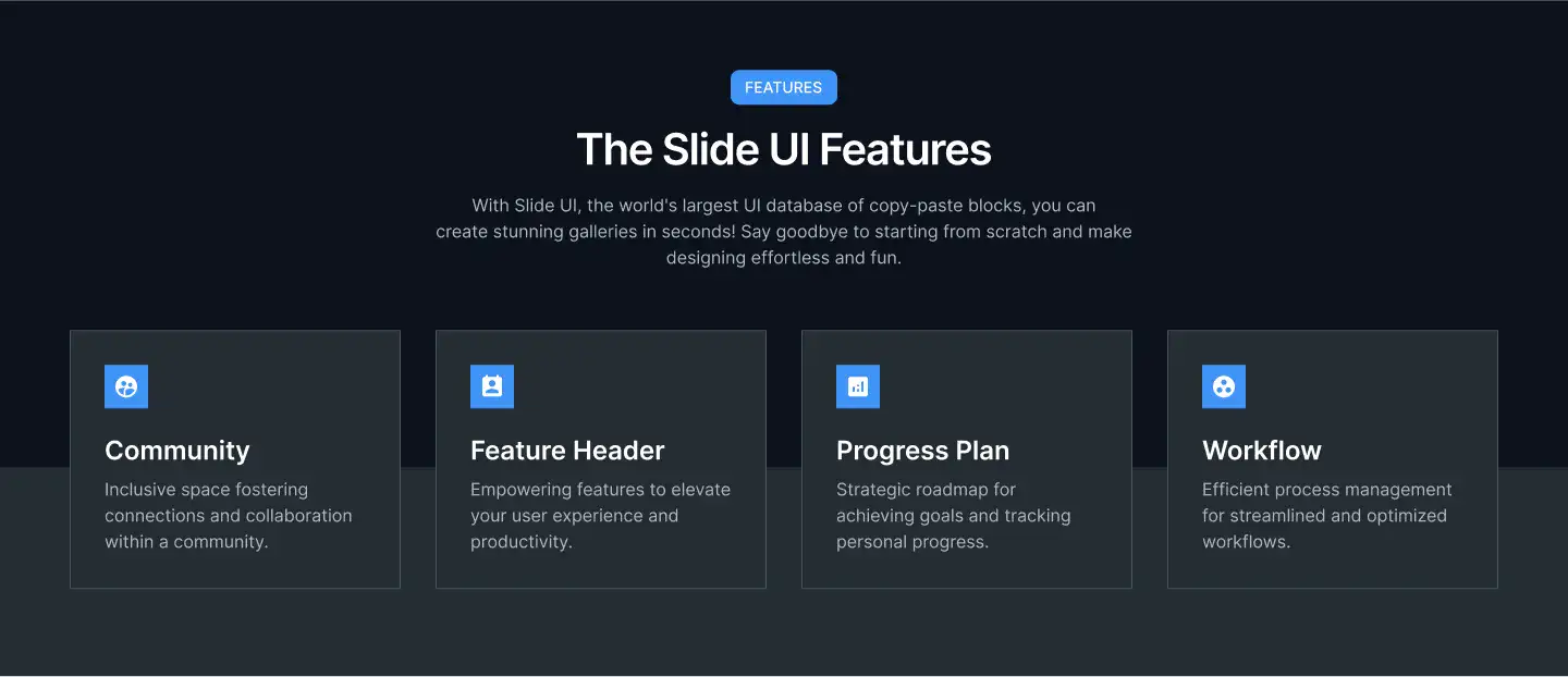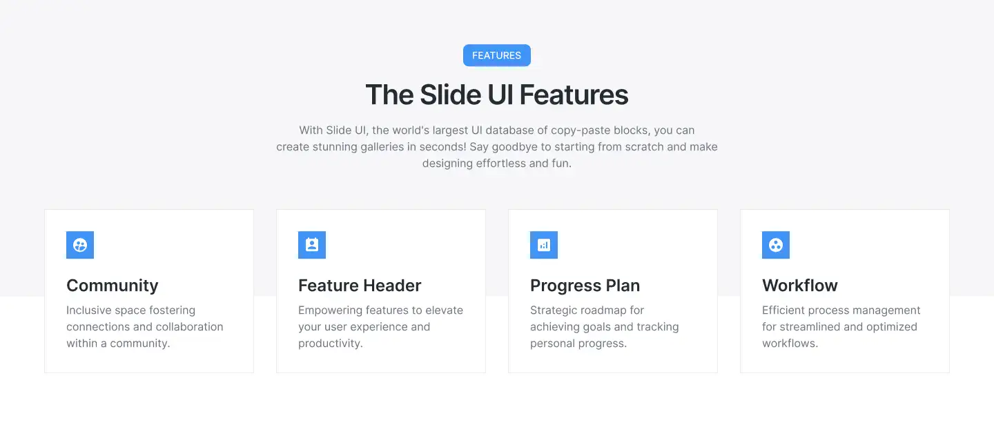 Grid or column-based layouts to highlight your best product features — fast, skimmable, and easy to reuse.