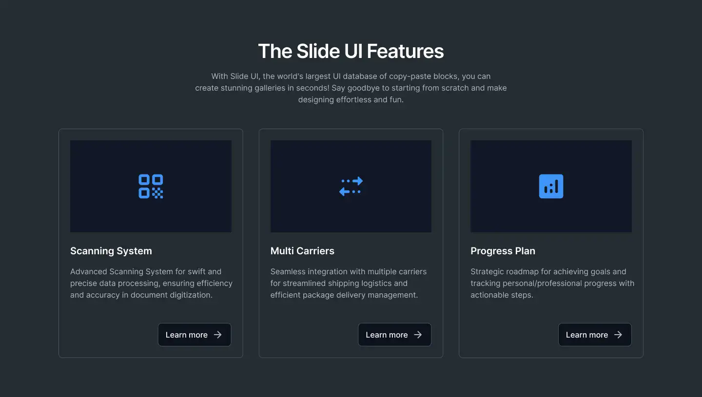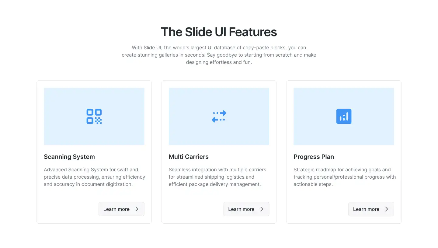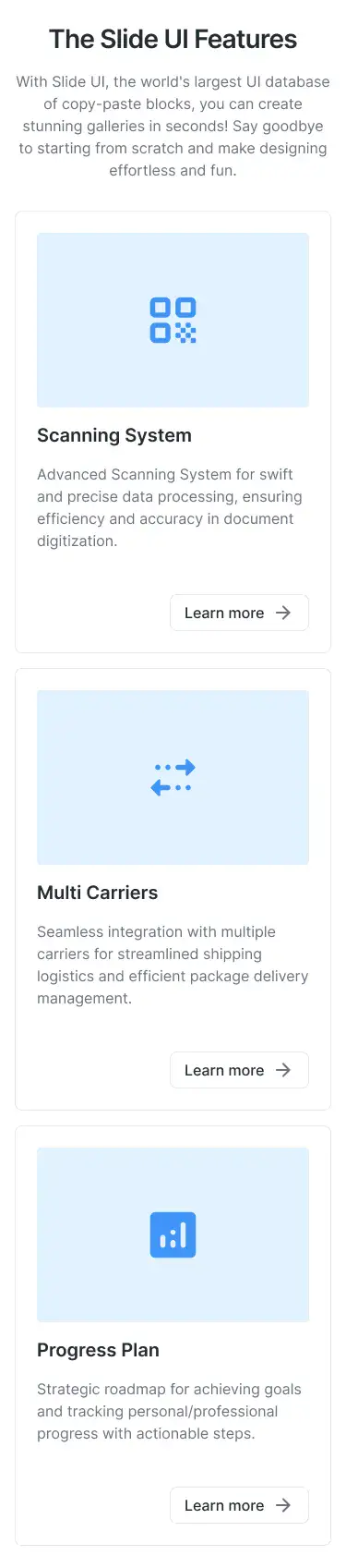 Grid or column-based layouts to highlight your best product features — fast, skimmable, and easy to reuse.