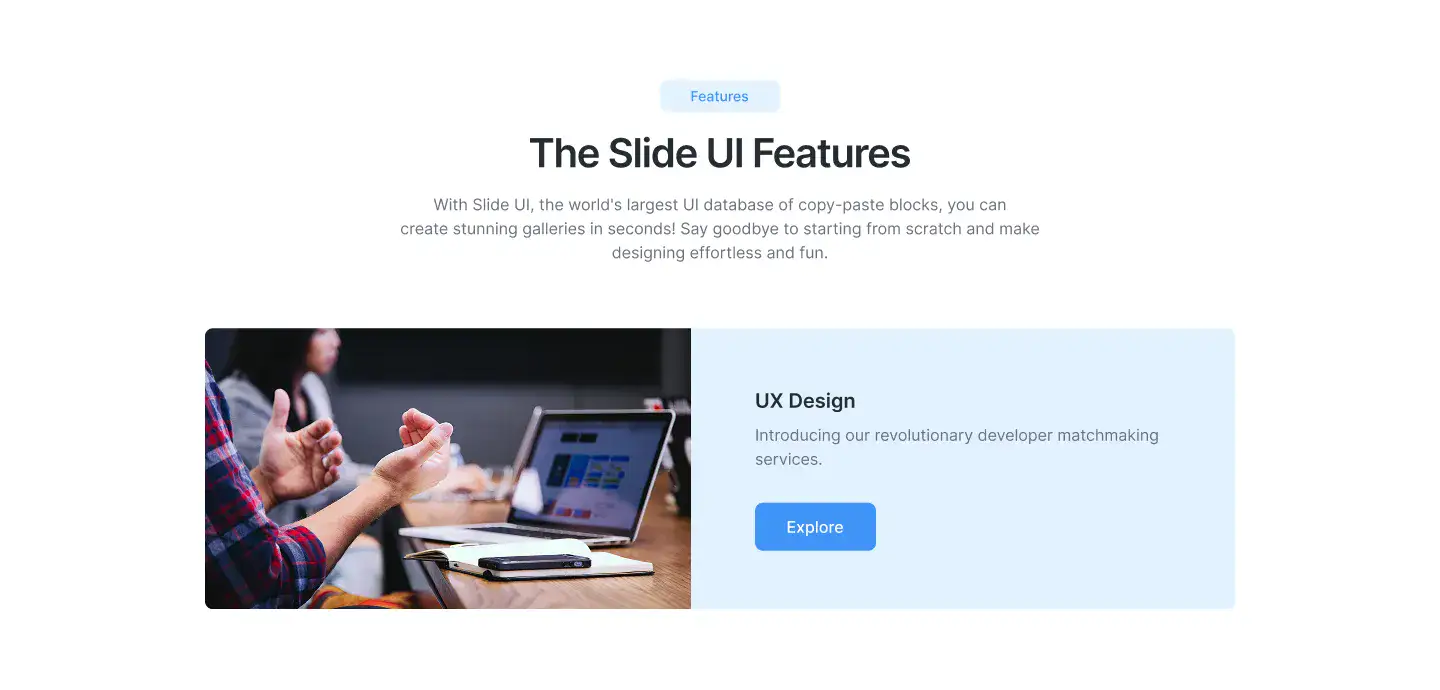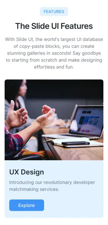 Grid or column-based layouts to highlight your best product features — fast, skimmable, and easy to reuse.