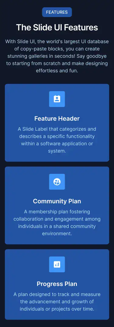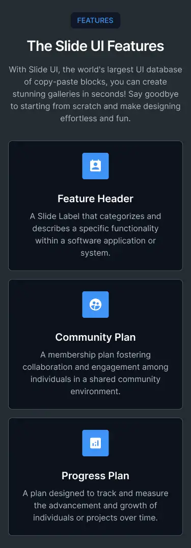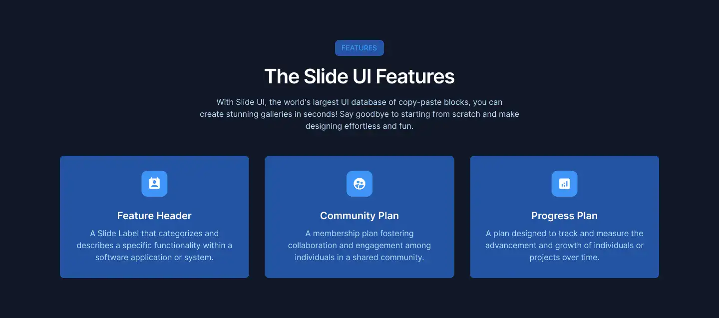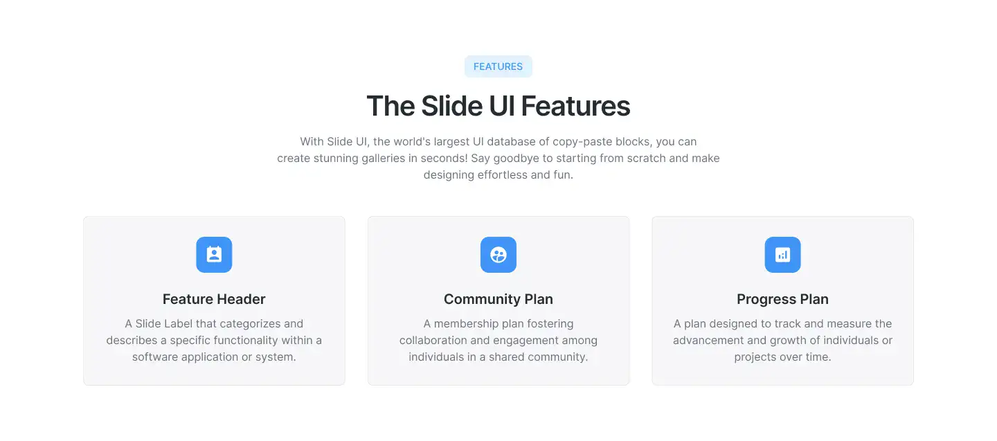 Grid or column-based layouts to highlight your best product features — fast, skimmable, and easy to reuse.