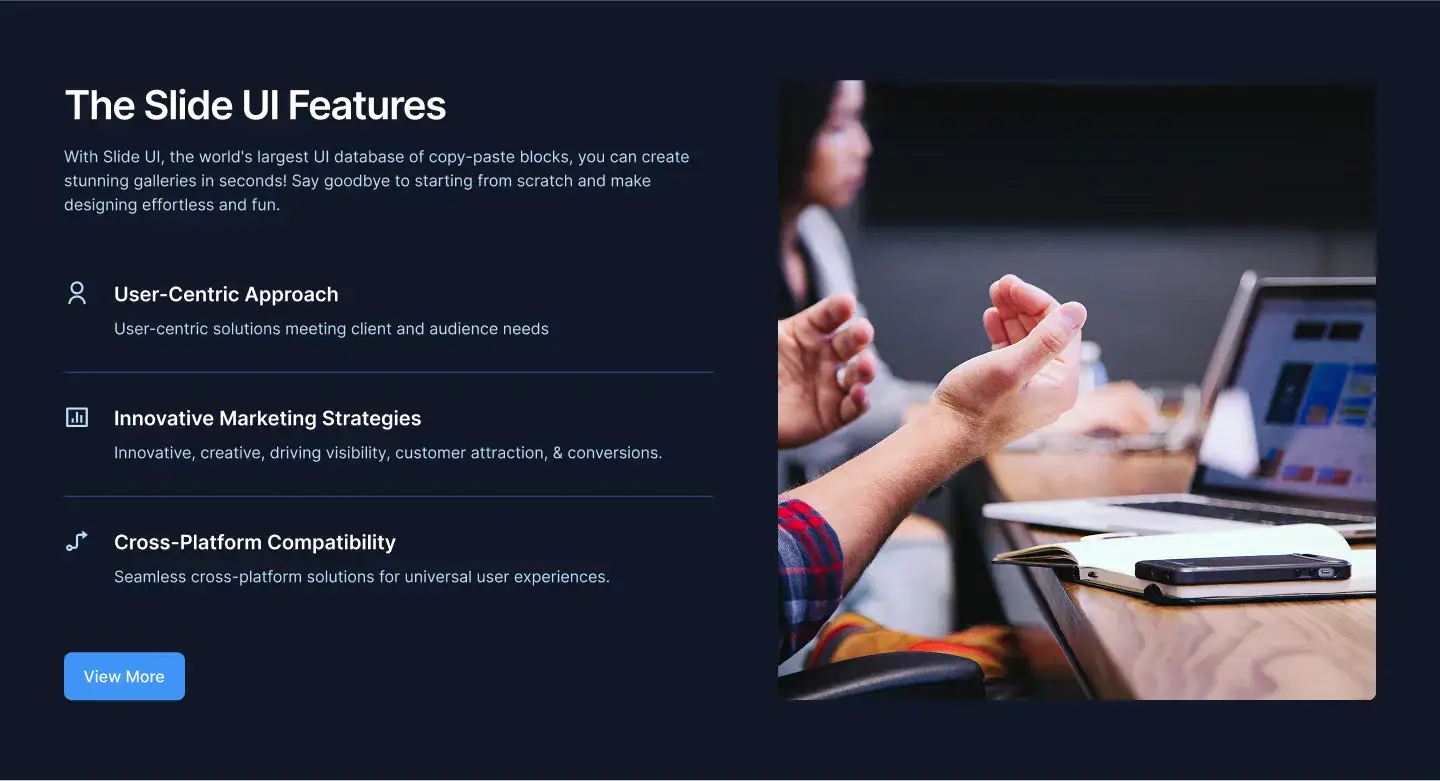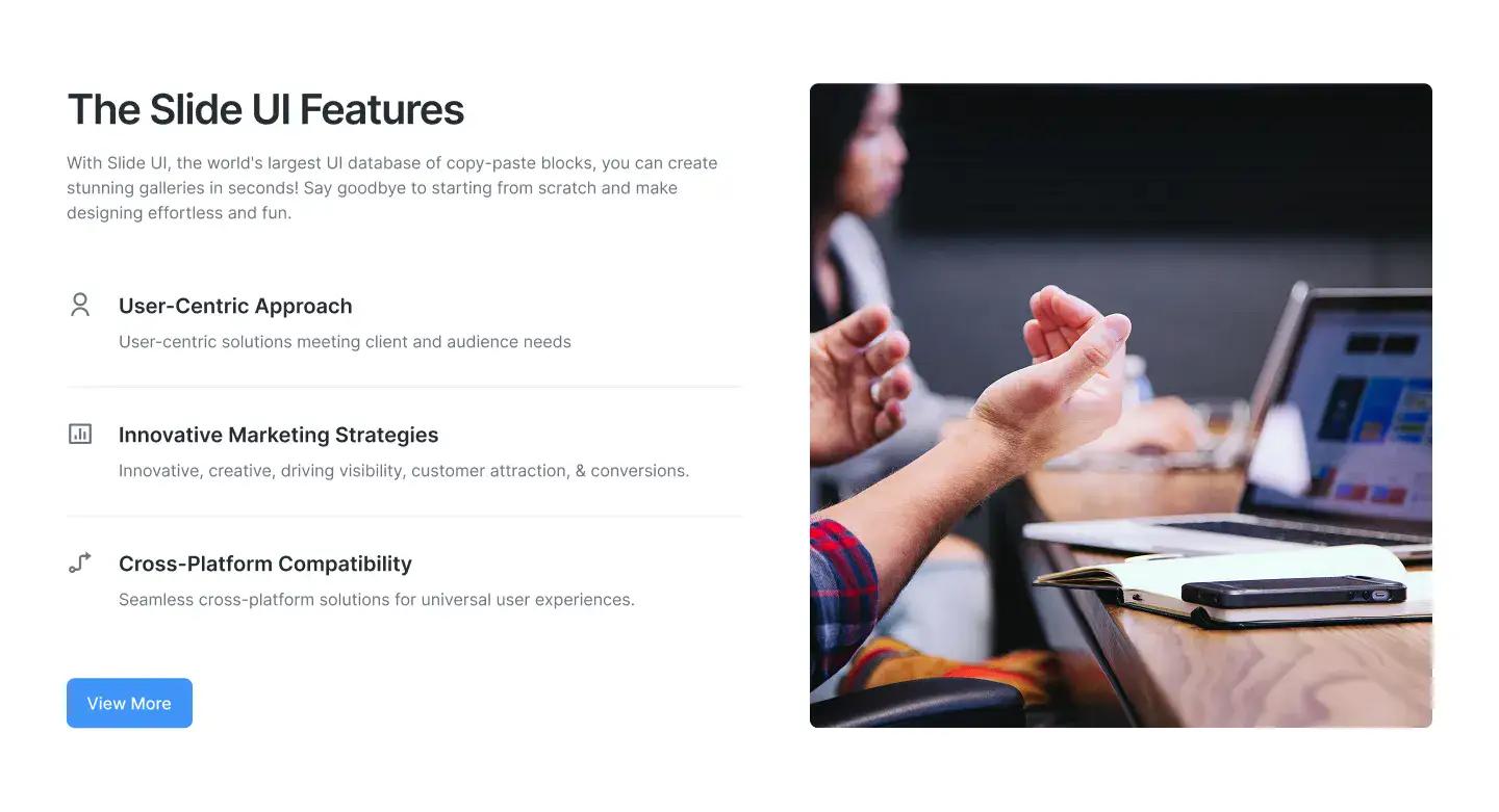 View Benefit / Statistic blocksPerfect for agencies, consultants, and SaaS tools to clearly explain services offered, with icon, card, or list formats.