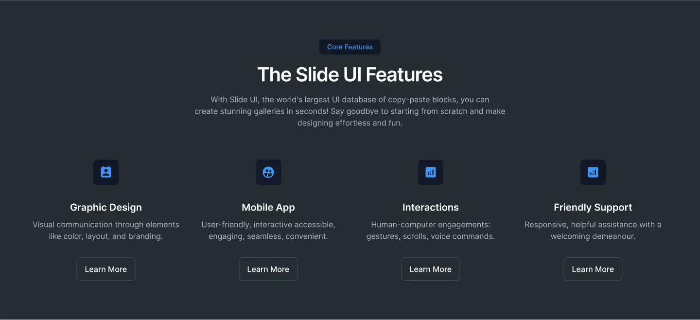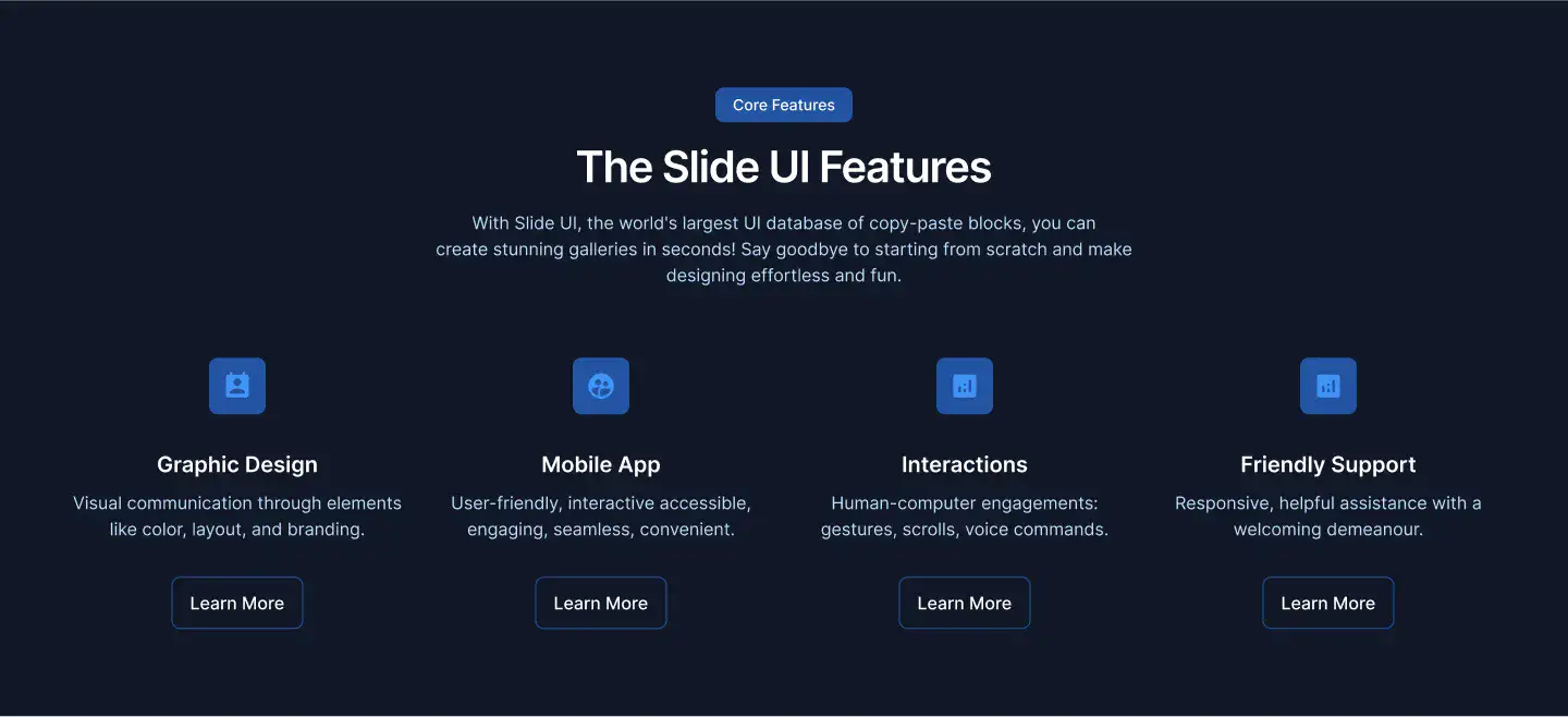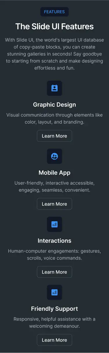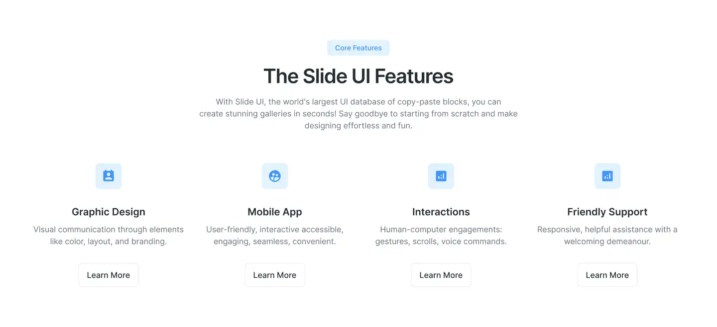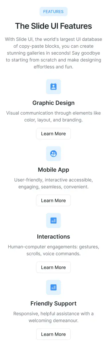 Grid or column-based layouts to highlight your best product features — fast, skimmable, and easy to reuse.
