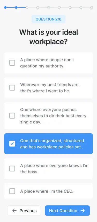 Form Survey Quiz Layout for Figma — clean, themeable and responsive across Desktop, Tablet and Mobile. Includes Light, Dark and Accent modes for fast customisation. Ideal for Energy, Fitness, Job Board.