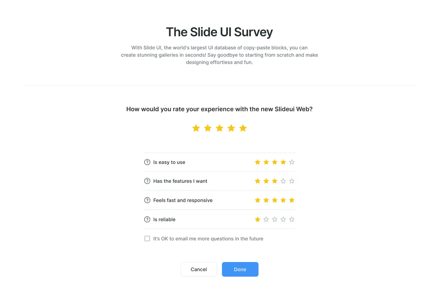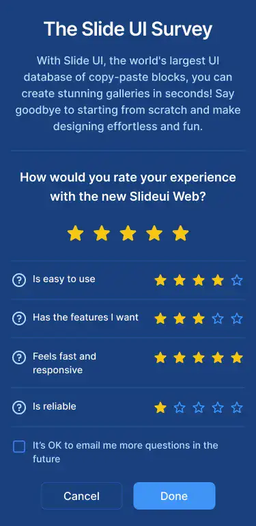 Note:If you prefer SaaS, you can also check out our sister platform app.slideui.com, which offers yearly plans. But if you’re an avid Figma user, the Builder is a must-have — while SaaS can look shiny, nothing beats the speed and control of owning the files directly.