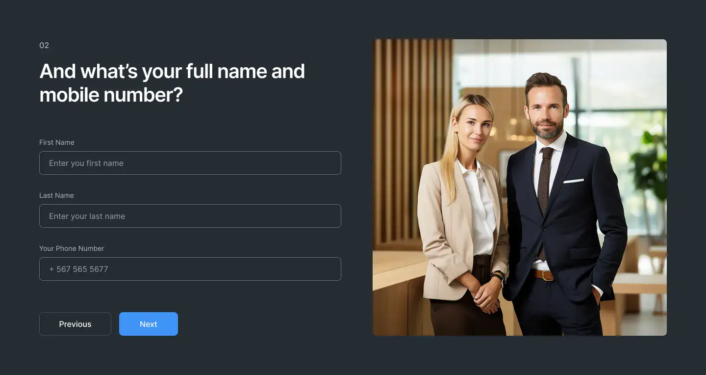 Form Survey Quiz Layout for Figma — minimal, themeable and responsive across Desktop, Tablet and Mobile. Includes Light, Dark and Accent modes for fast customisation. Ideal for Crypto, Fintech, Healthcare.