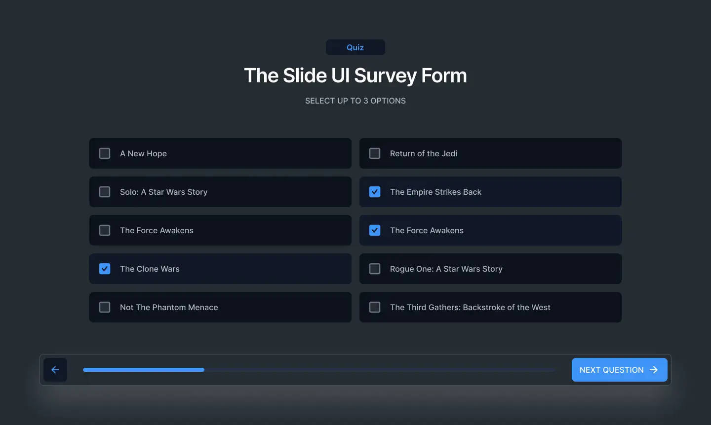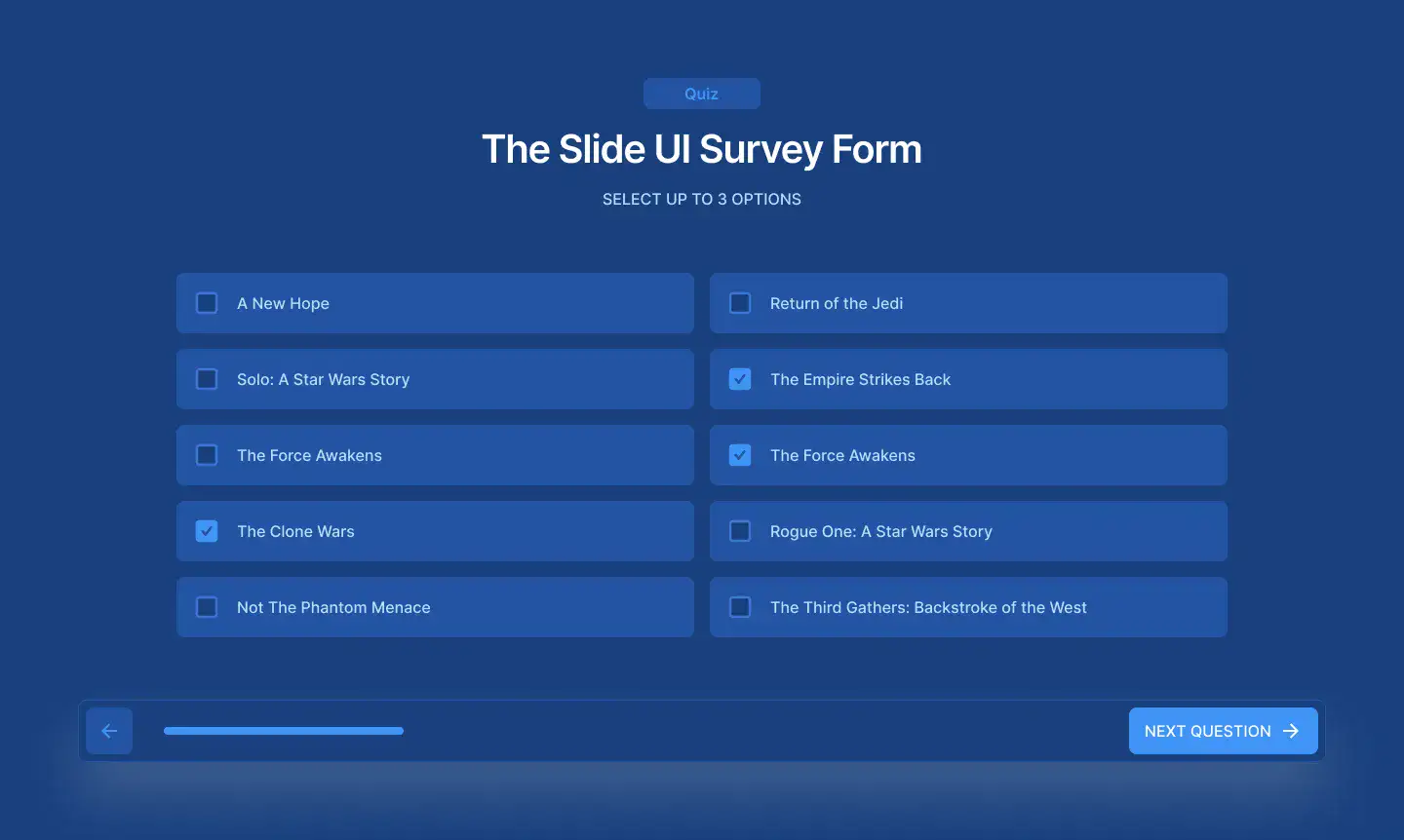 Multi-step flows for onboarding, signups, or product tours. Includes visual progress indicators.