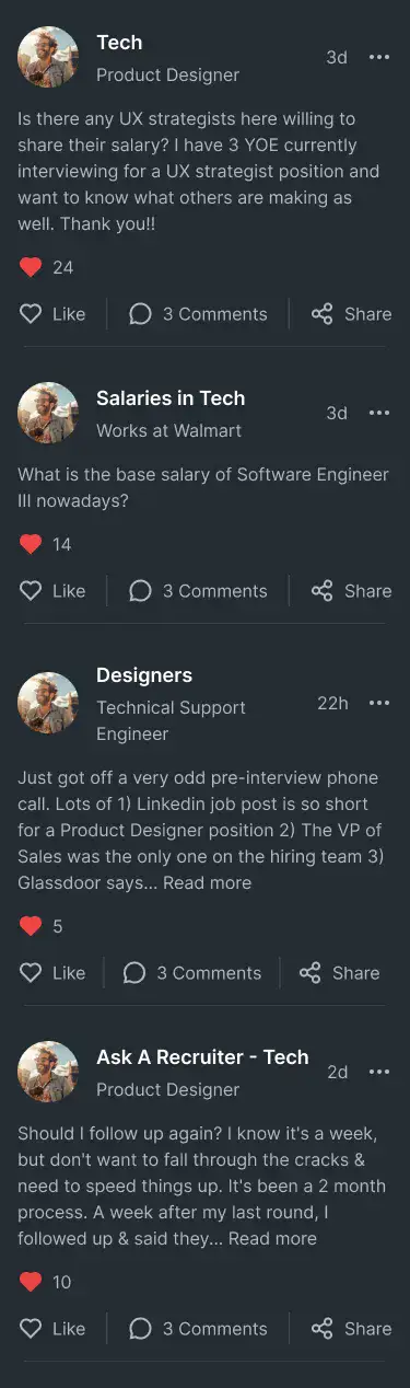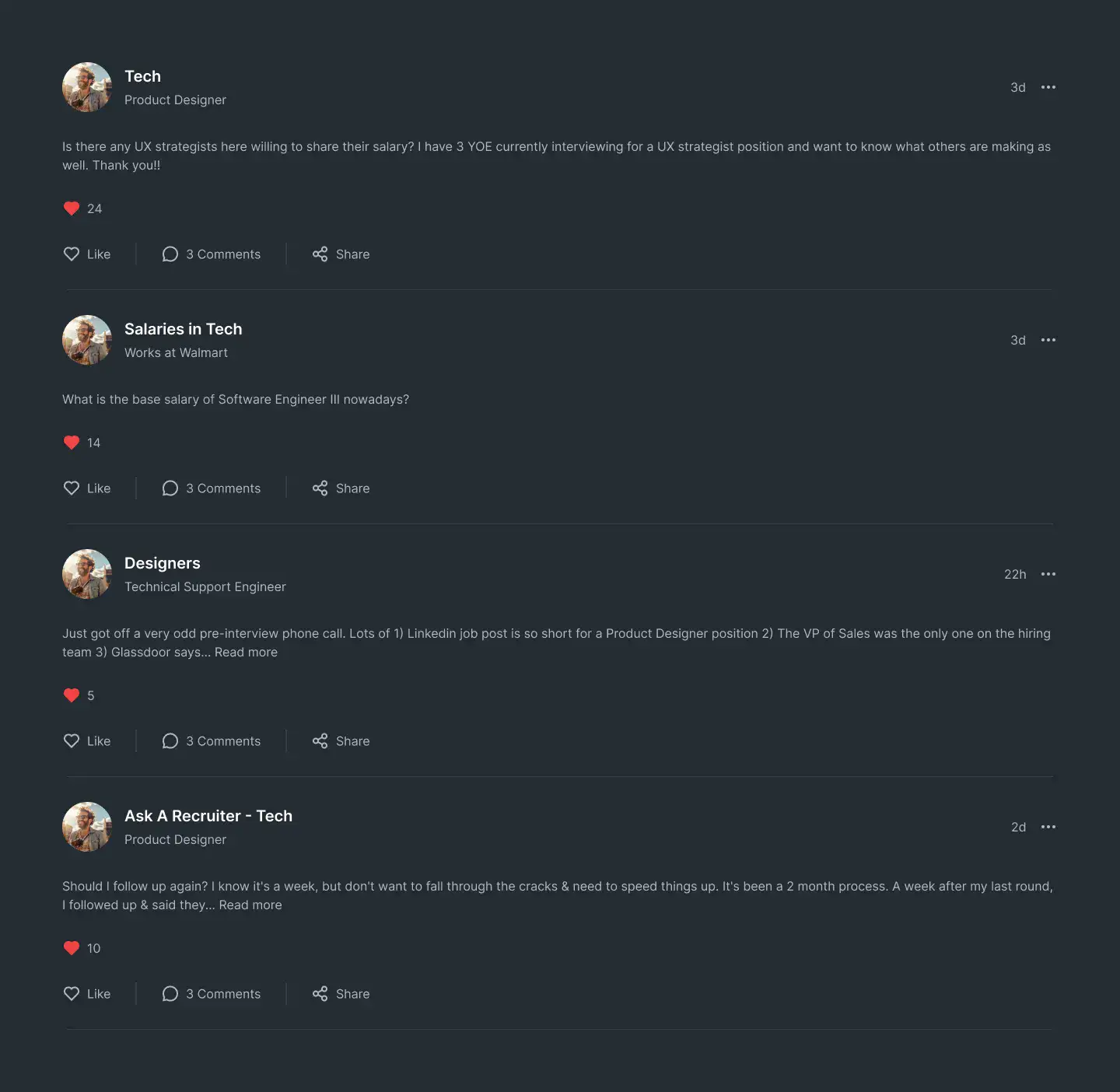 Design community, forum, or support boards with user posts, threads, and activity feeds.