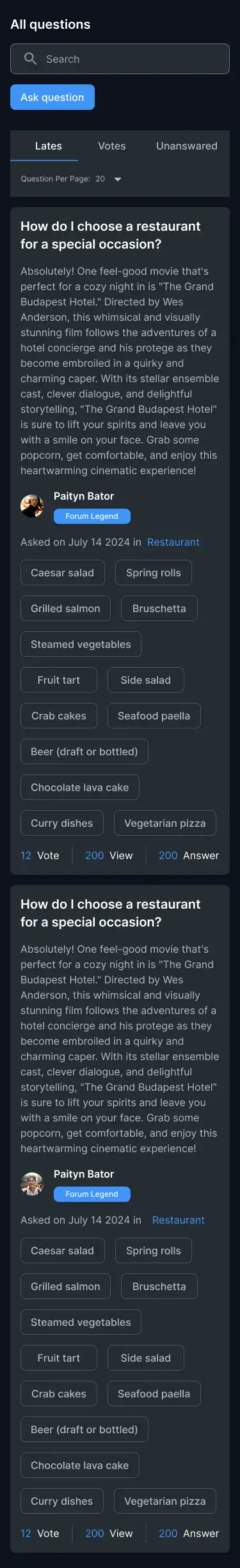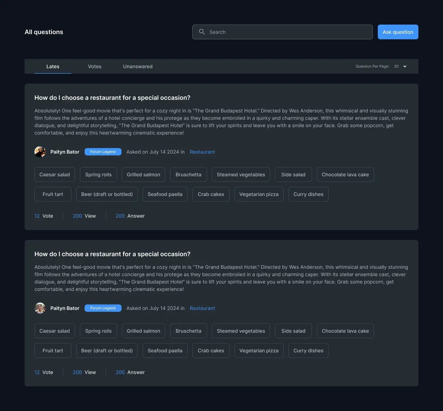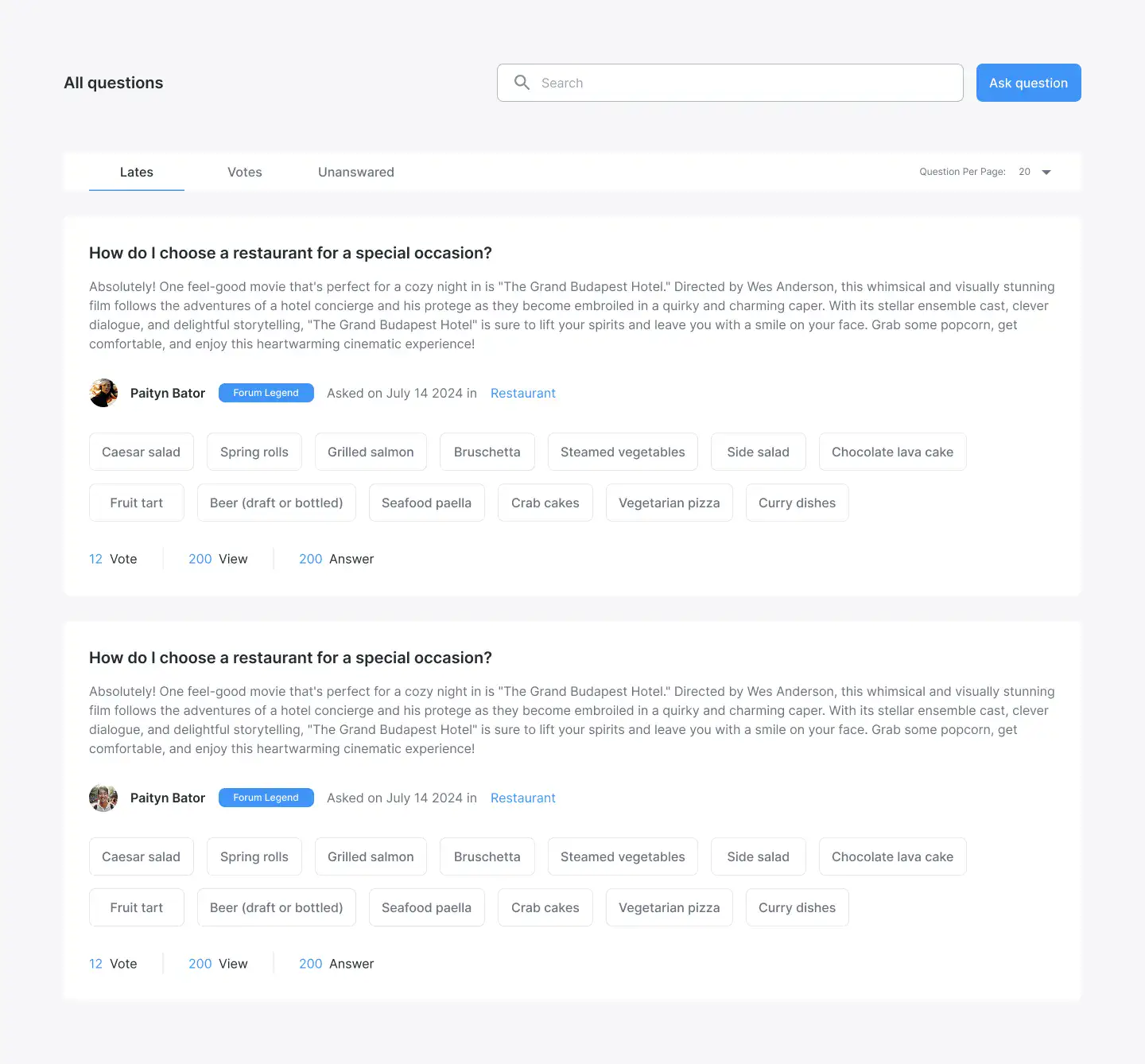 Design community, forum, or support boards with user posts, threads, and activity feeds.
