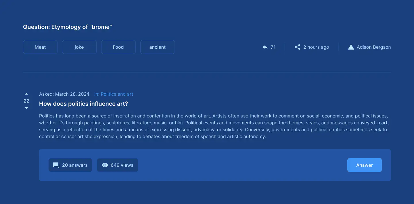 Design community, forum, or support boards with user posts, threads, and activity feeds.
