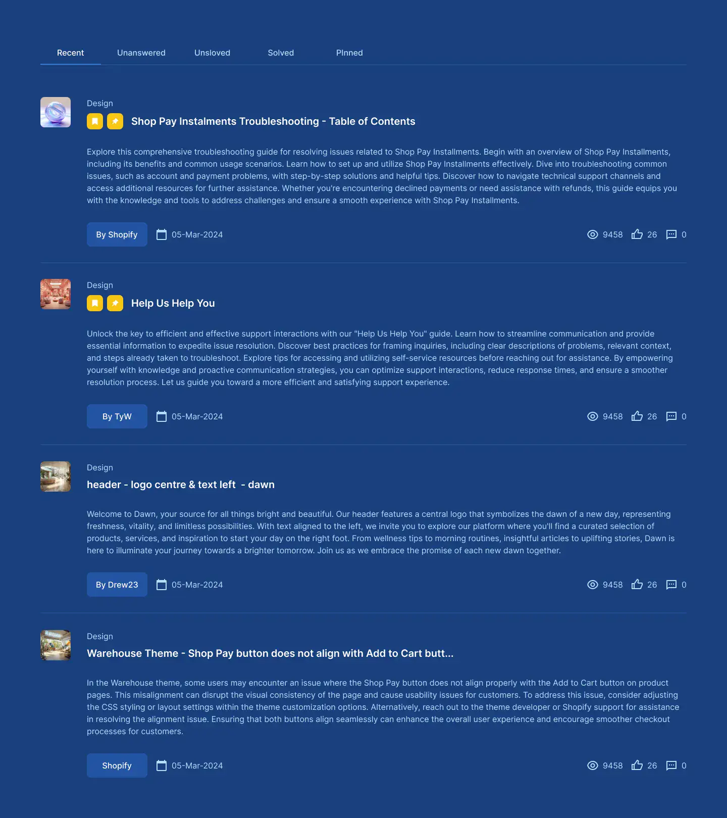 Design community, forum, or support boards with user posts, threads, and activity feeds.