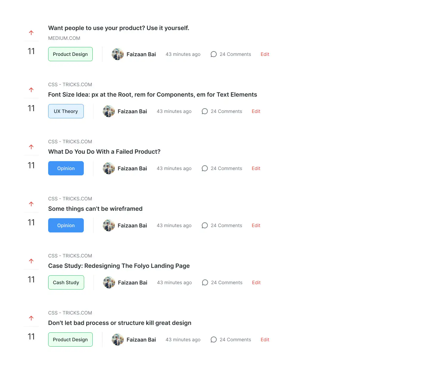 Display posts with preview cards, titles, and tags. Perfect for content hubs or design resource libraries.