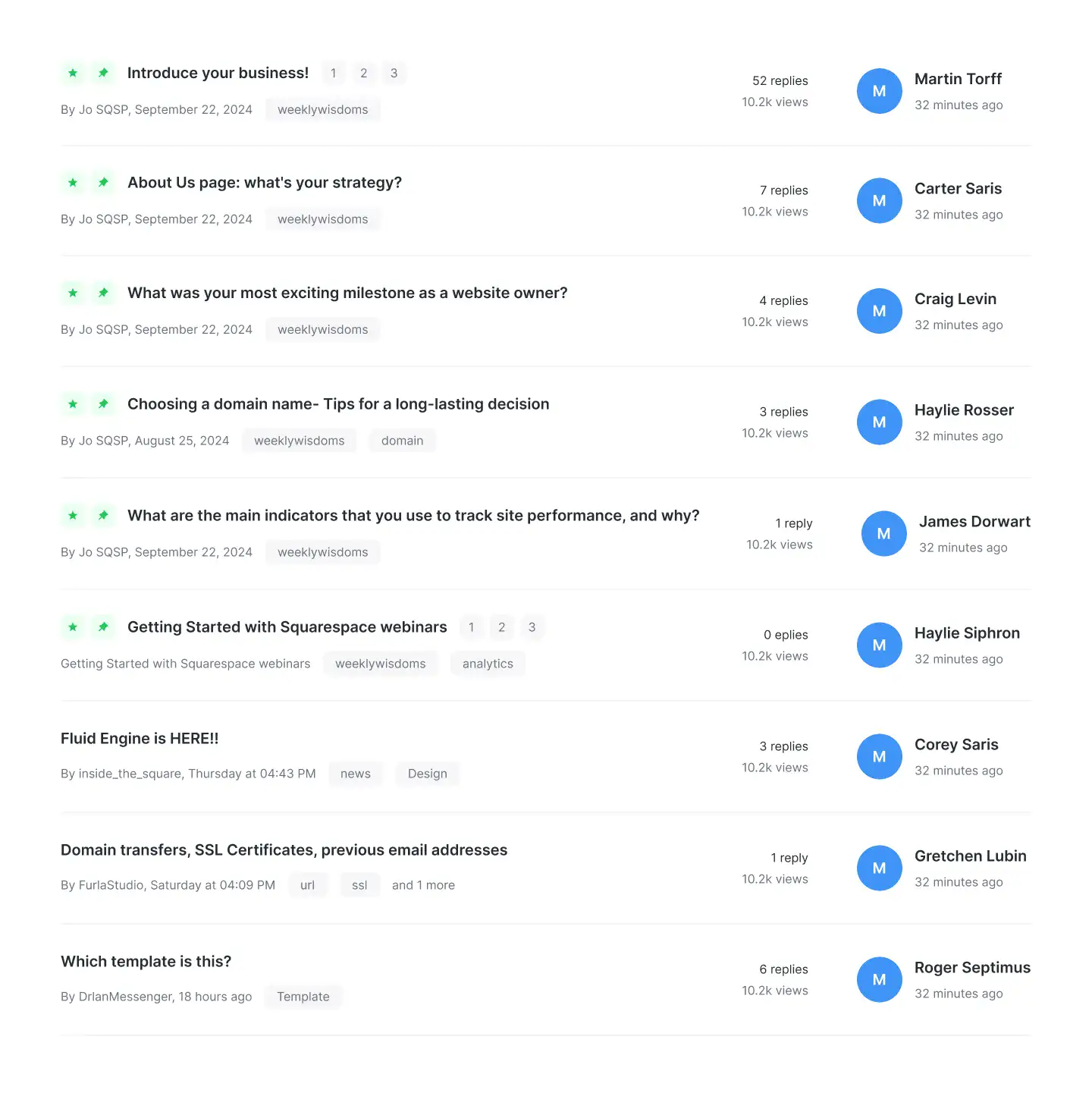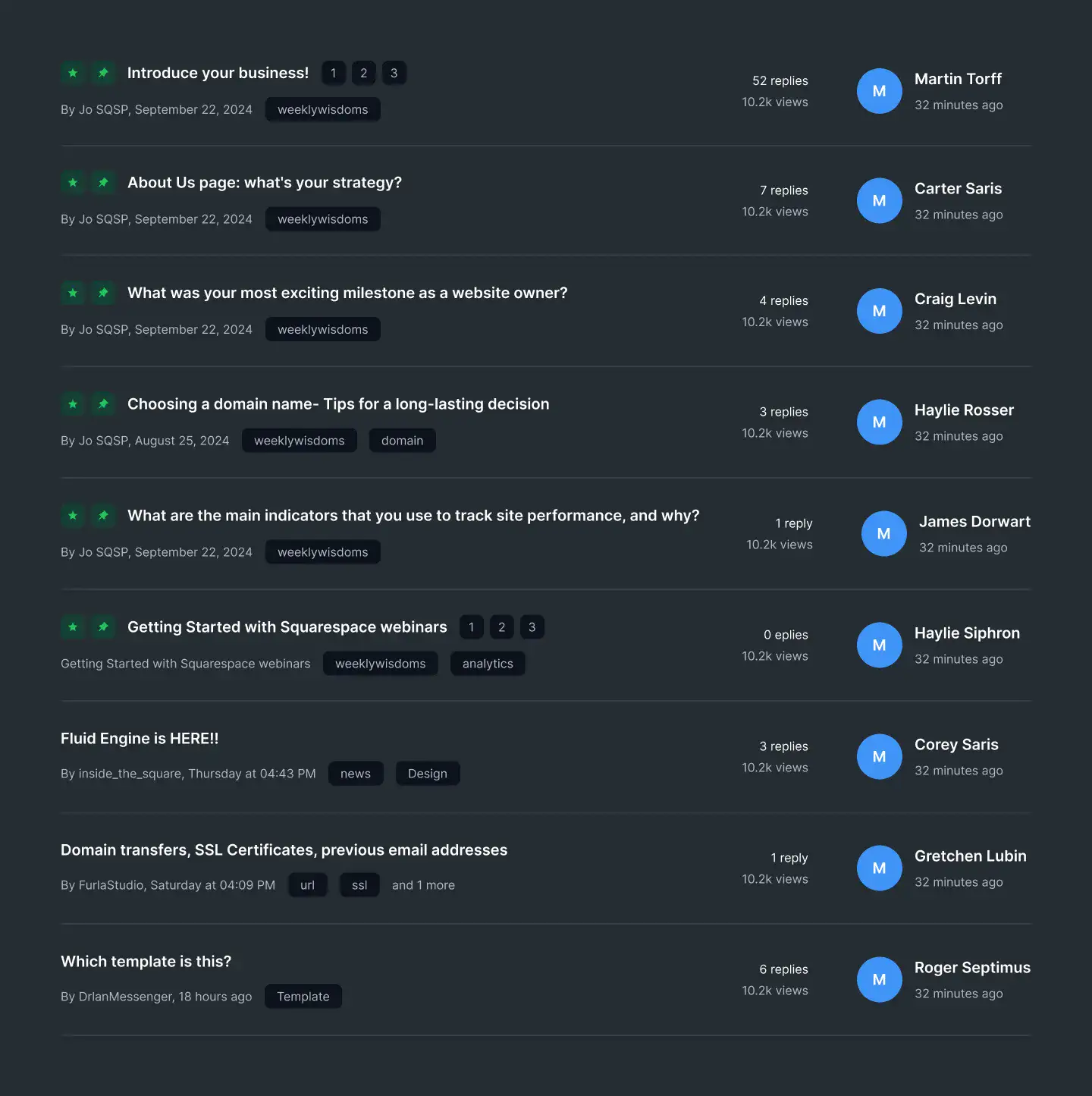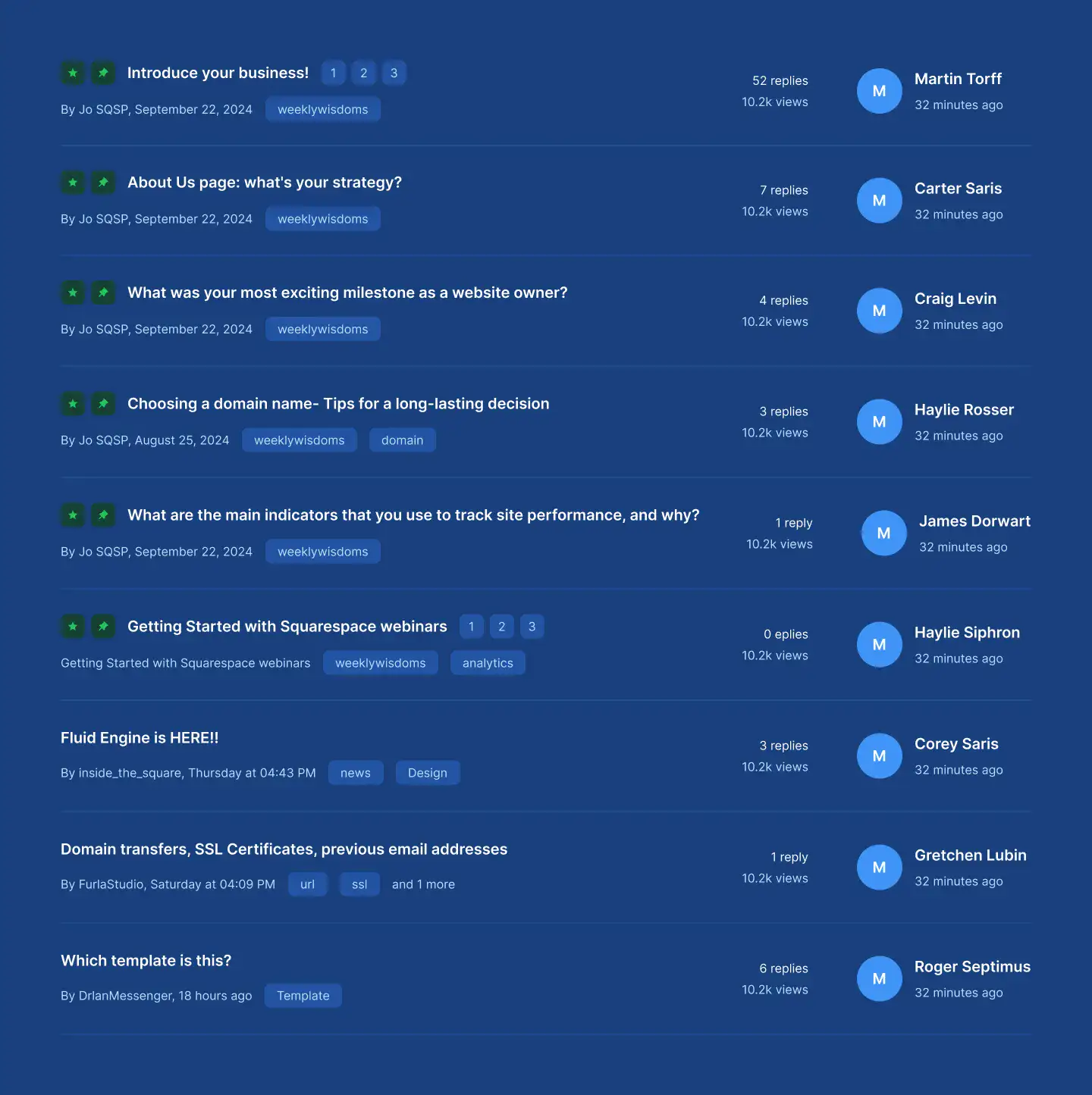 Design community, forum, or support boards with user posts, threads, and activity feeds.