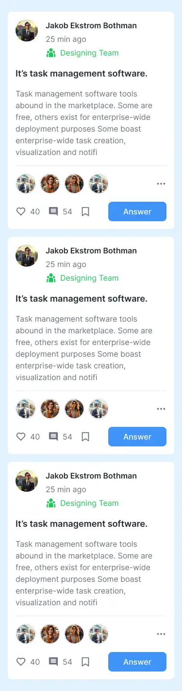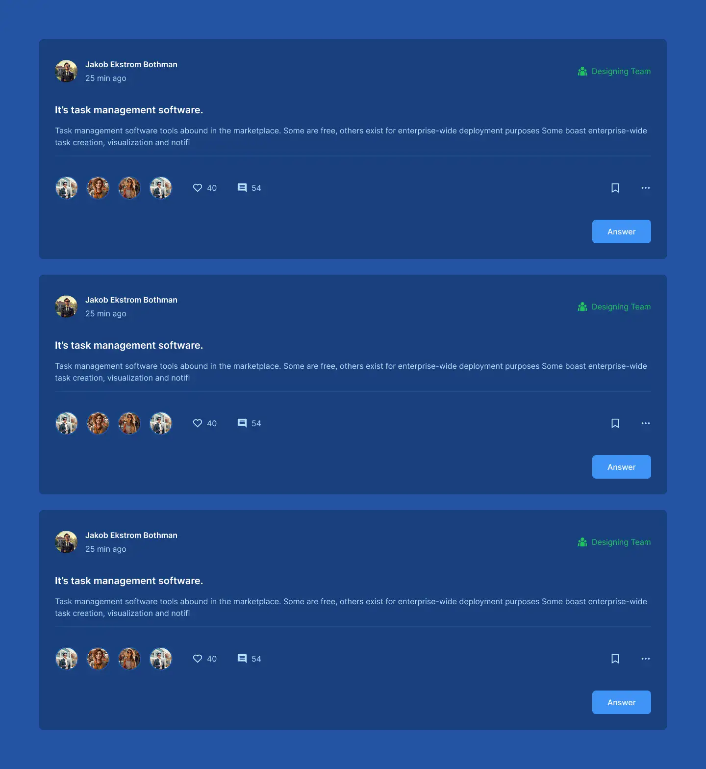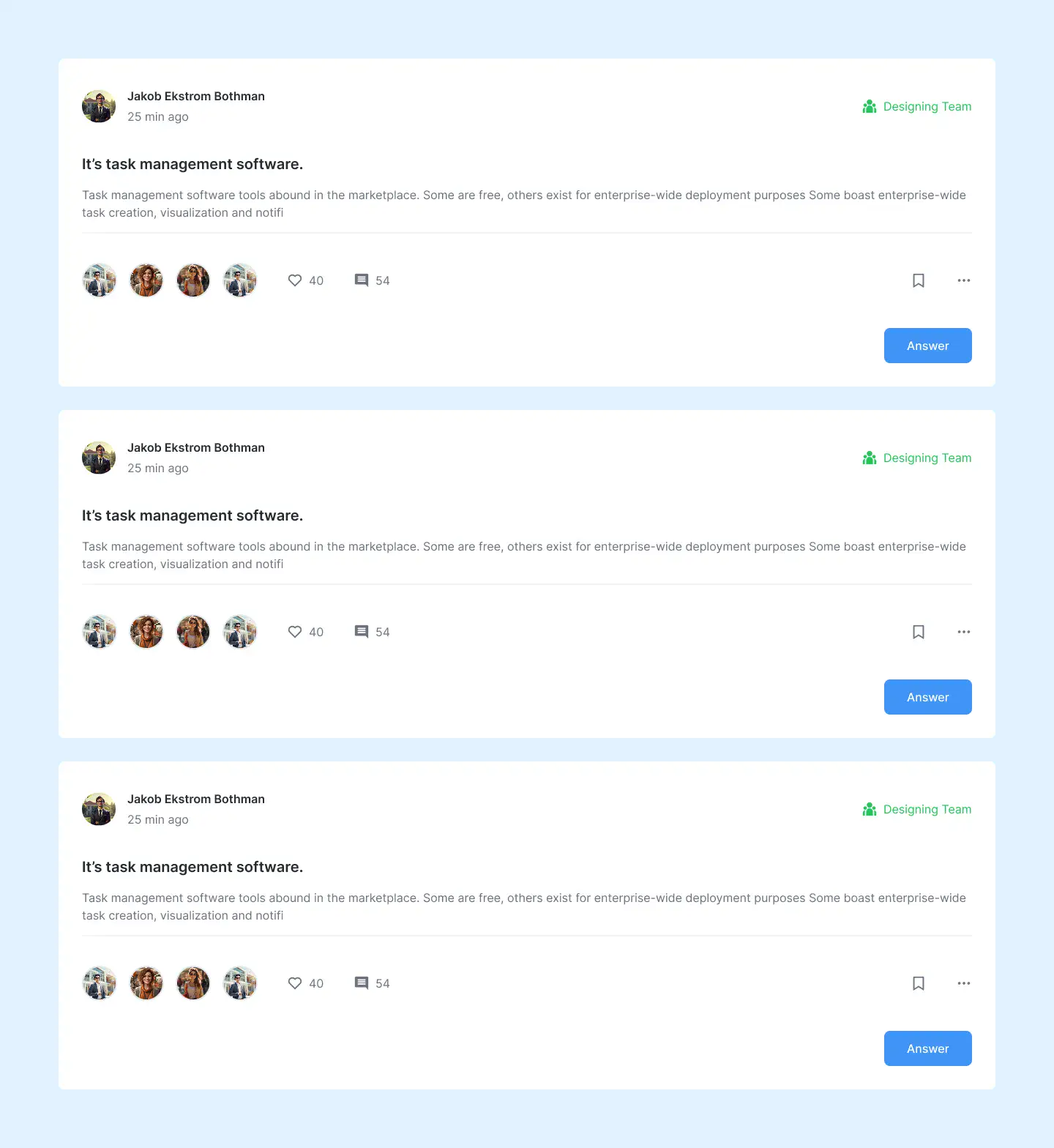 Design community, forum, or support boards with user posts, threads, and activity feeds.