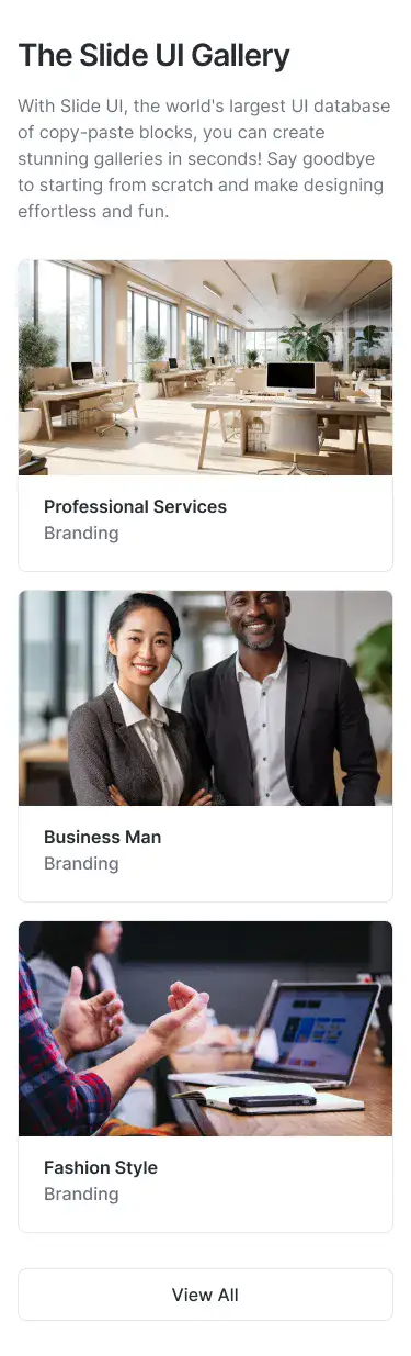 Organise your blog or knowledge base visually with clean, responsive category cards or grids.