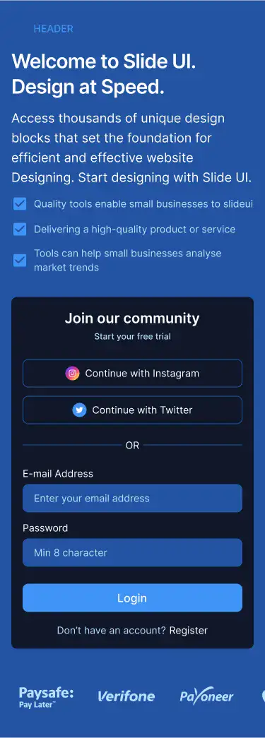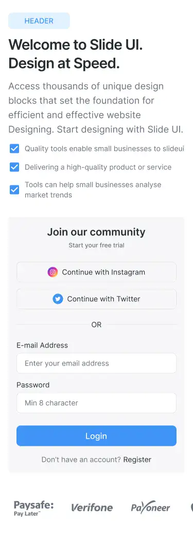 Authentication blocks built with conversion best practices. Clean, secure, and mobile-optimised.
