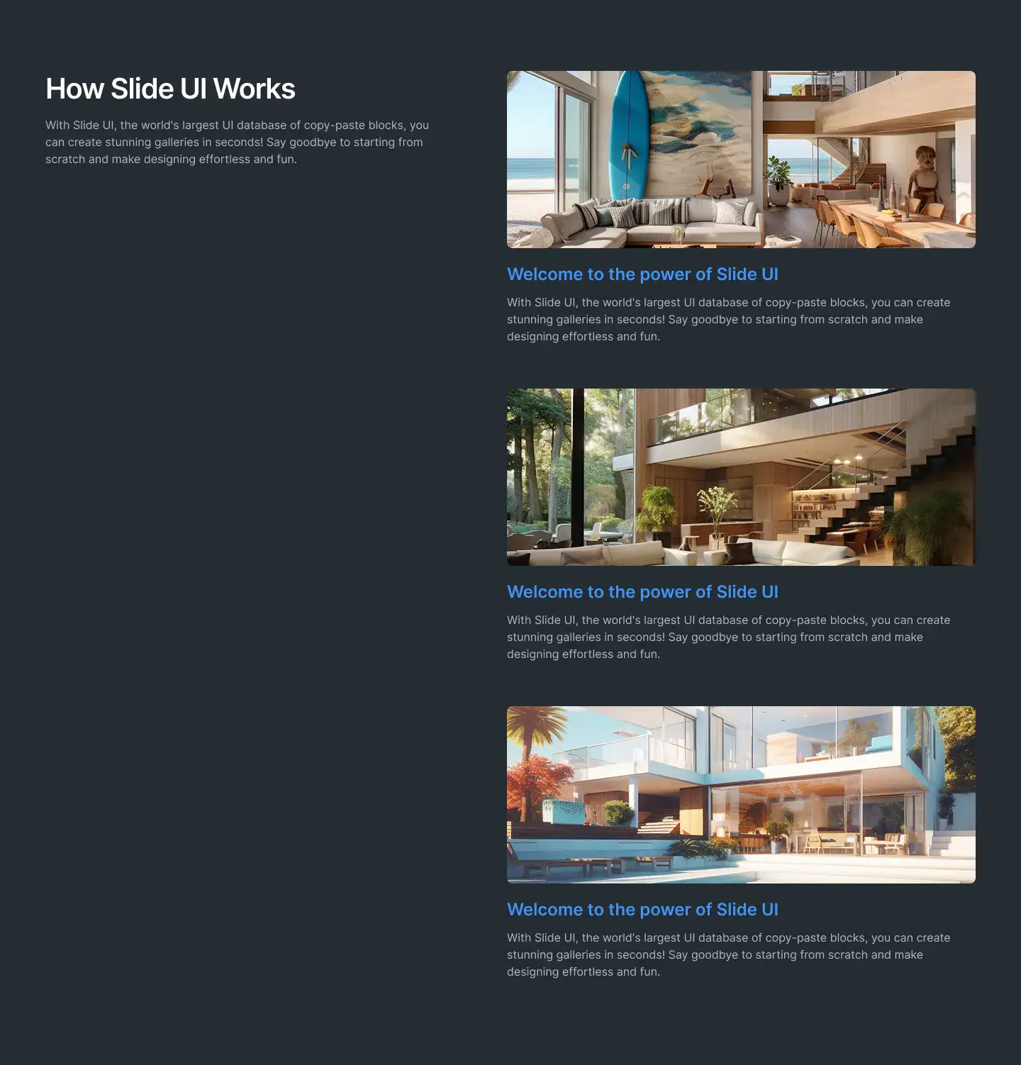 View Hero blocksShowcase processes, features, or onboarding in a clean 3–4 step layout. These are perfect for explaining complex ideas simply.