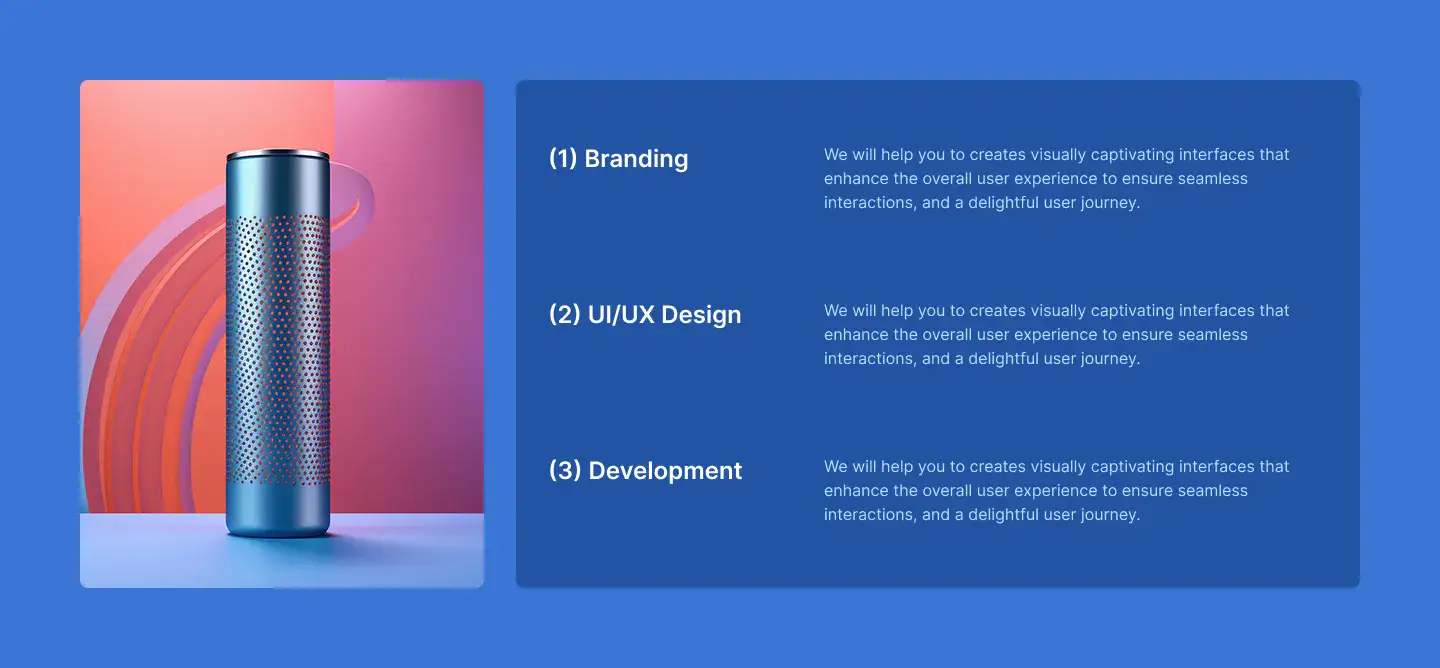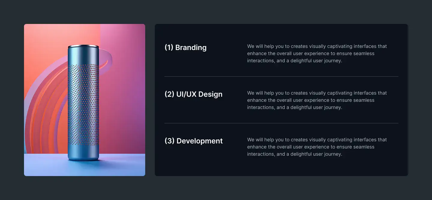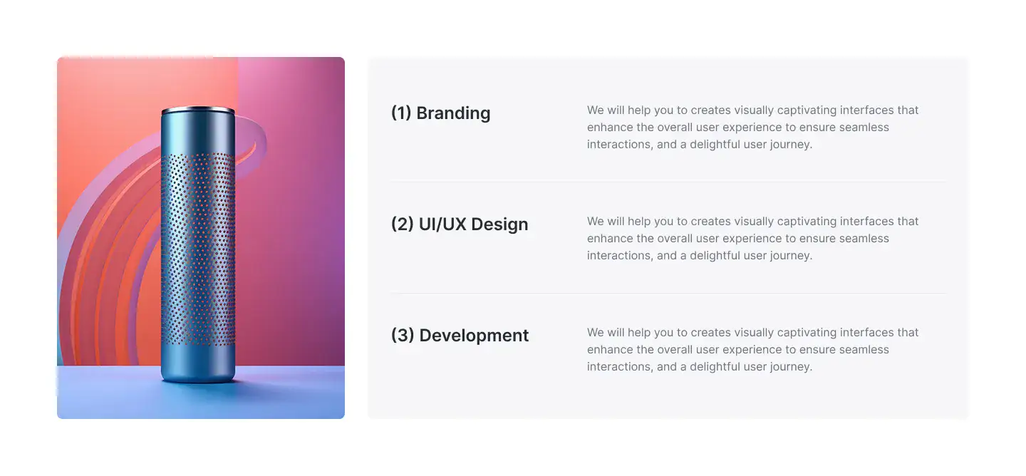Grid or column-based layouts to highlight your best product features — fast, skimmable, and easy to reuse.