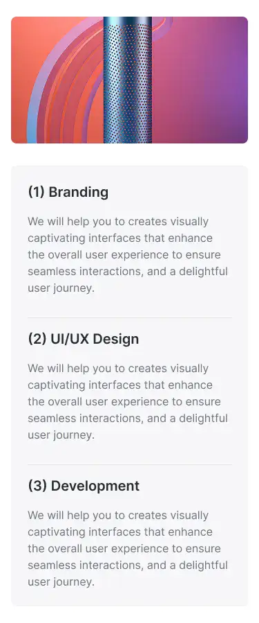 Lightweight sections for storytelling, intros, or visual breaks. Ideal for portfolios, agencies, and SaaS.