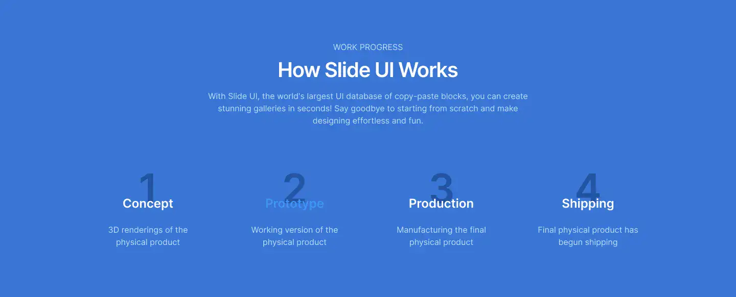 View Hero blocksShowcase processes, features, or onboarding in a clean 3–4 step layout. These are perfect for explaining complex ideas simply.