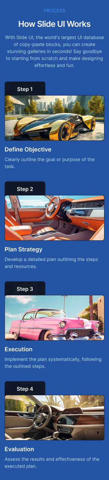 View How It Works blocksHighlight product advantages with icons, metrics, and comparison stats. Designed to build trust and speed up decision-making.