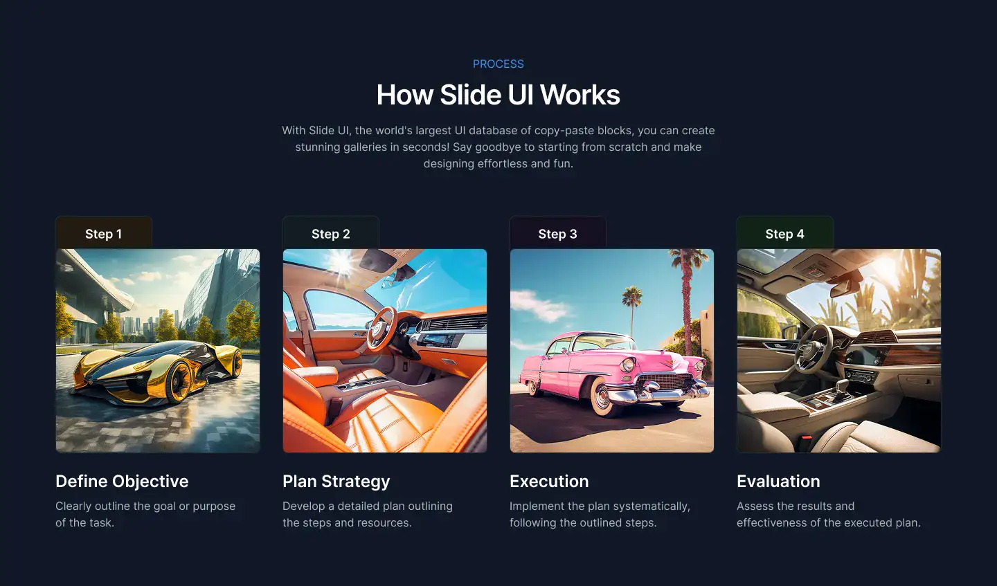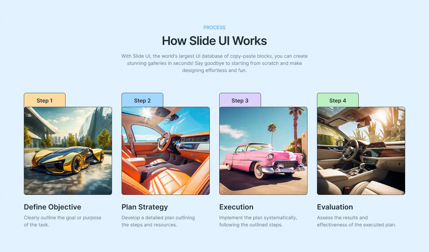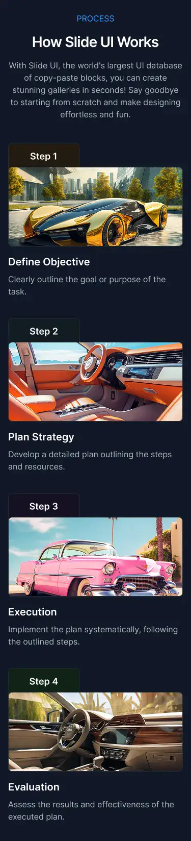 View Hero blocksShowcase processes, features, or onboarding in a clean 3–4 step layout. These are perfect for explaining complex ideas simply.