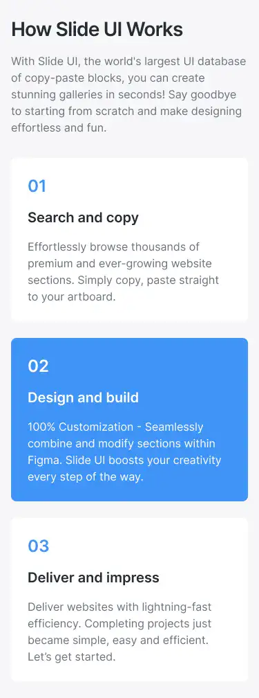 View Hero blocksShowcase processes, features, or onboarding in a clean 3–4 step layout. These are perfect for explaining complex ideas simply.