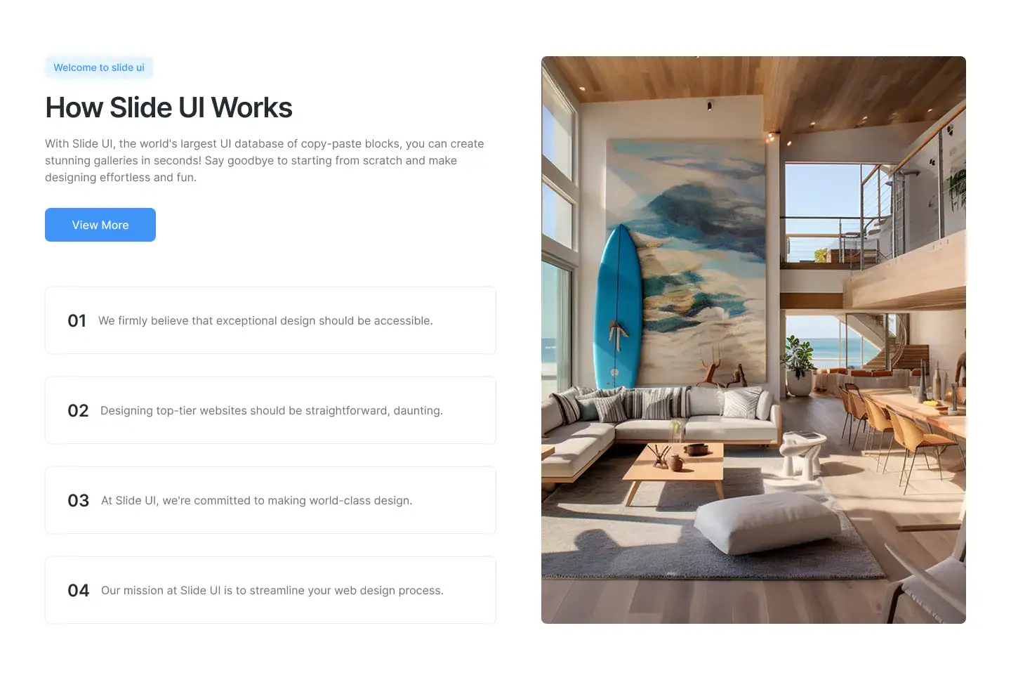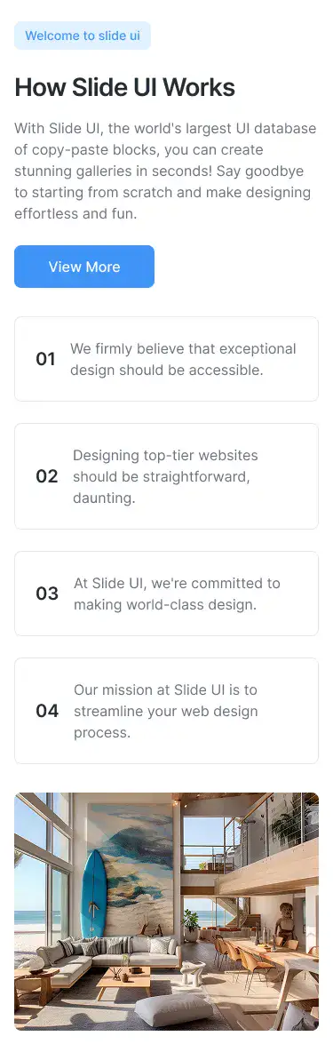 View Hero blocksShowcase processes, features, or onboarding in a clean 3–4 step layout. These are perfect for explaining complex ideas simply.