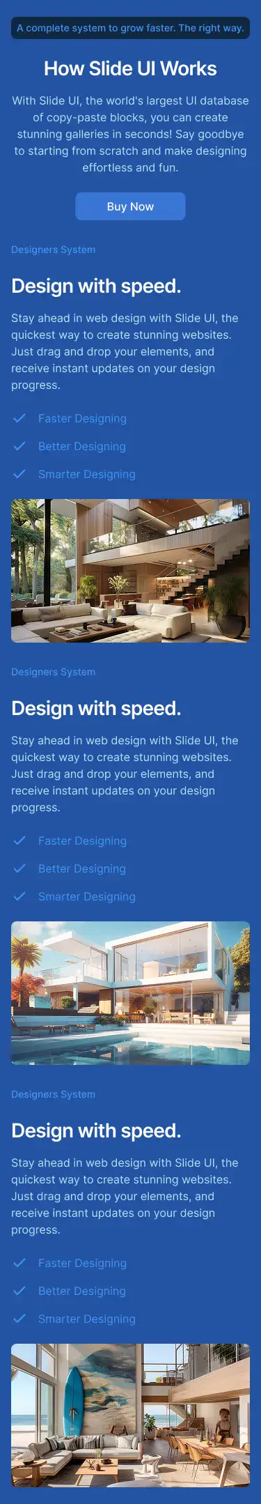 The system is focused more on websites, landing pages, and mobile web. There are plenty of components you can adapt for apps (cards, dashboards, forms, etc.), but app design is its own category. So yes, while we do offer areas that overlap app design, we heavily focus on web, where speed matters.