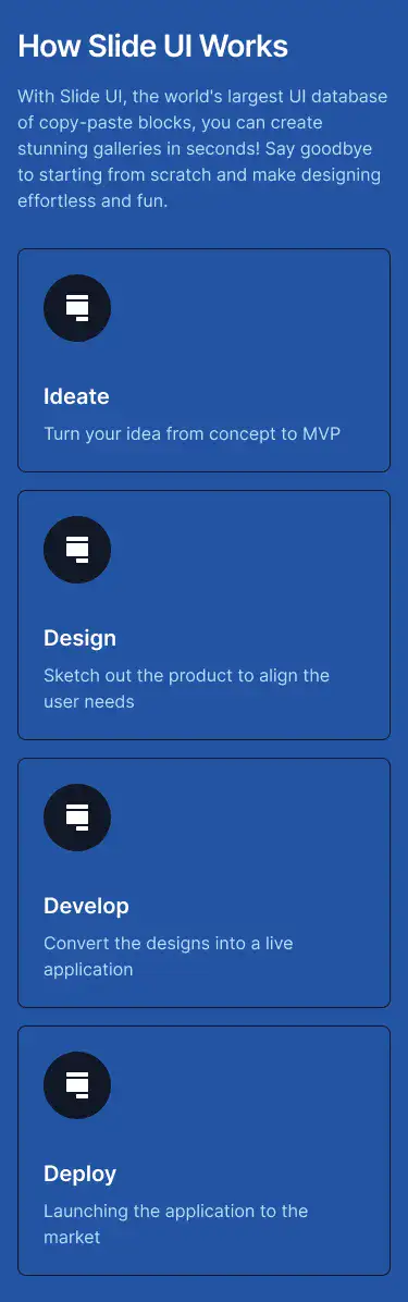 View Hero blocksShowcase processes, features, or onboarding in a clean 3–4 step layout. These are perfect for explaining complex ideas simply.