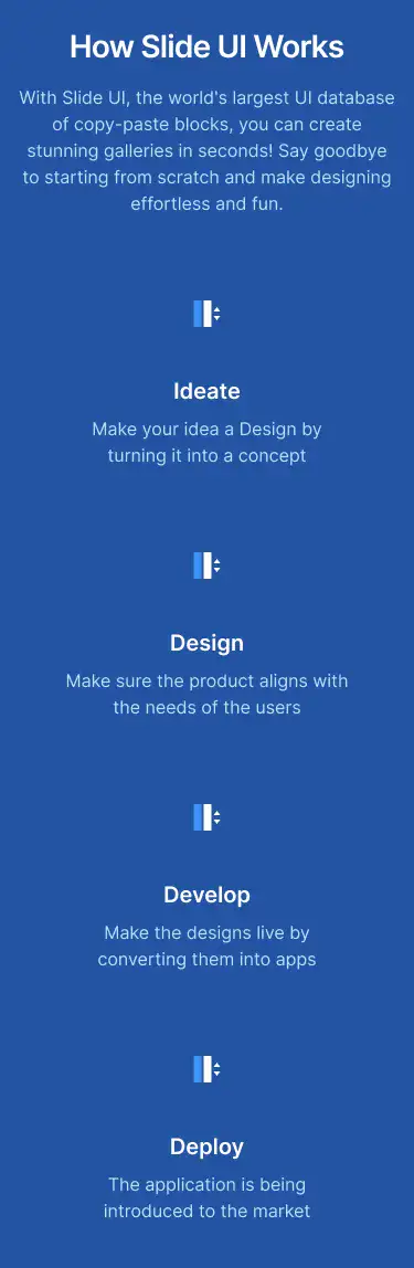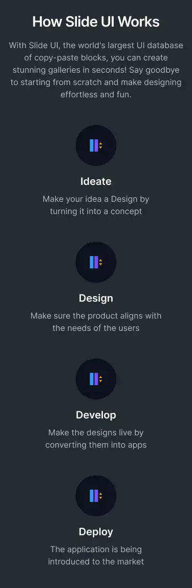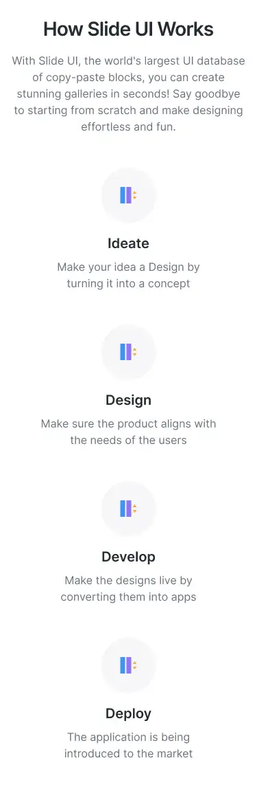 View How It Works blocksHighlight product advantages with icons, metrics, and comparison stats. Designed to build trust and speed up decision-making.