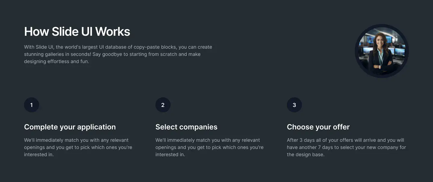 View How It Works blocksHighlight product advantages with icons, metrics, and comparison stats. Designed to build trust and speed up decision-making.