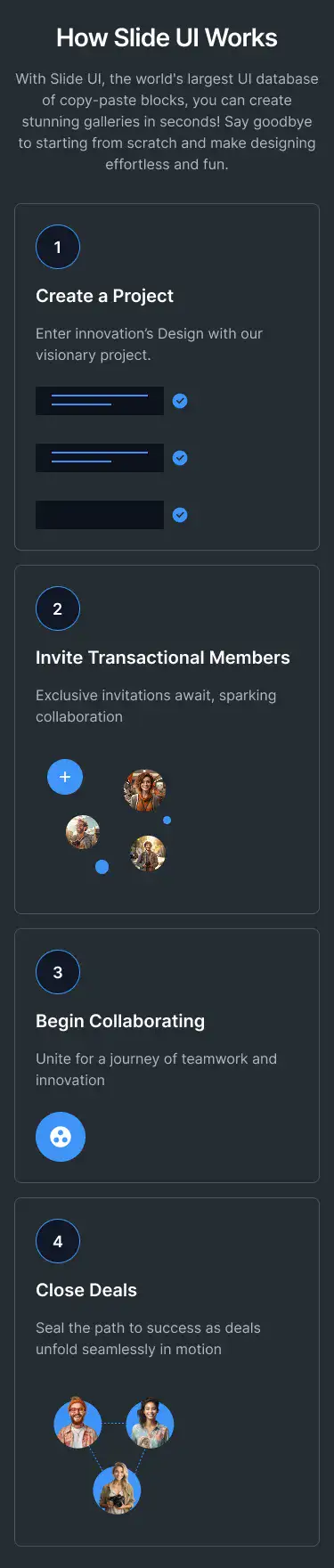 View Hero blocksShowcase processes, features, or onboarding in a clean 3–4 step layout. These are perfect for explaining complex ideas simply.