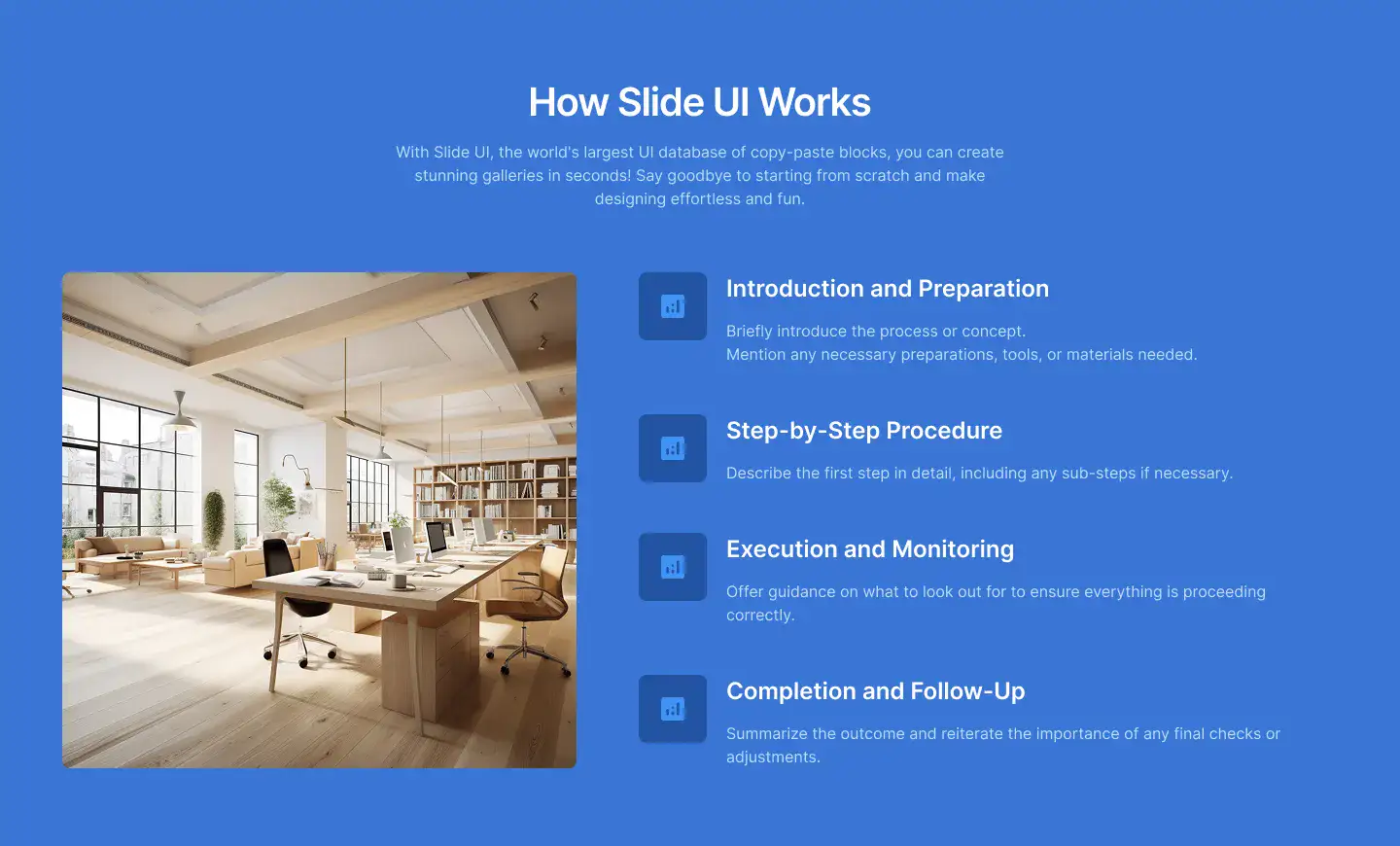 View Hero blocksShowcase processes, features, or onboarding in a clean 3–4 step layout. These are perfect for explaining complex ideas simply.