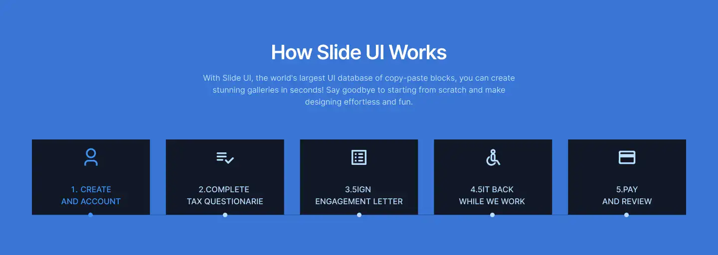 View Hero blocksShowcase processes, features, or onboarding in a clean 3–4 step layout. These are perfect for explaining complex ideas simply.
