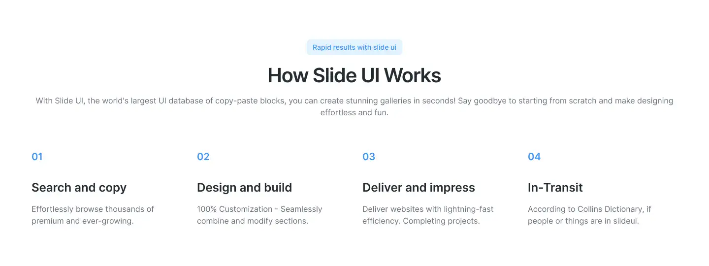 View How It Works blocksHighlight product advantages with icons, metrics, and comparison stats. Designed to build trust and speed up decision-making.