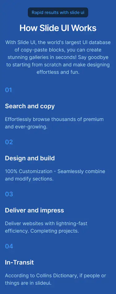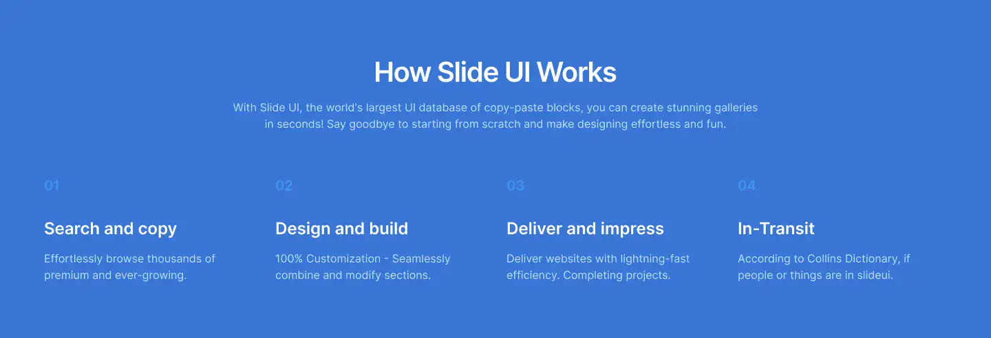 View Hero blocksShowcase processes, features, or onboarding in a clean 3–4 step layout. These are perfect for explaining complex ideas simply.