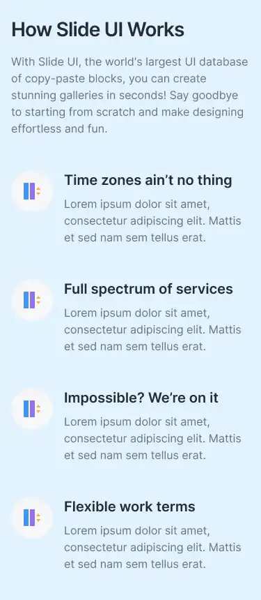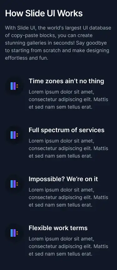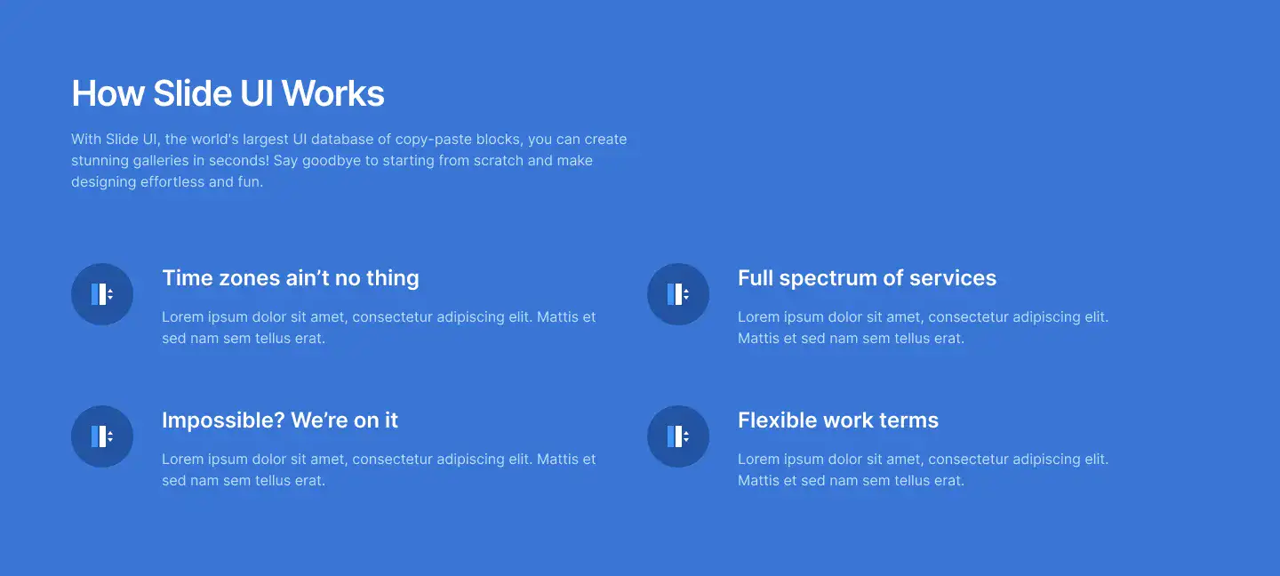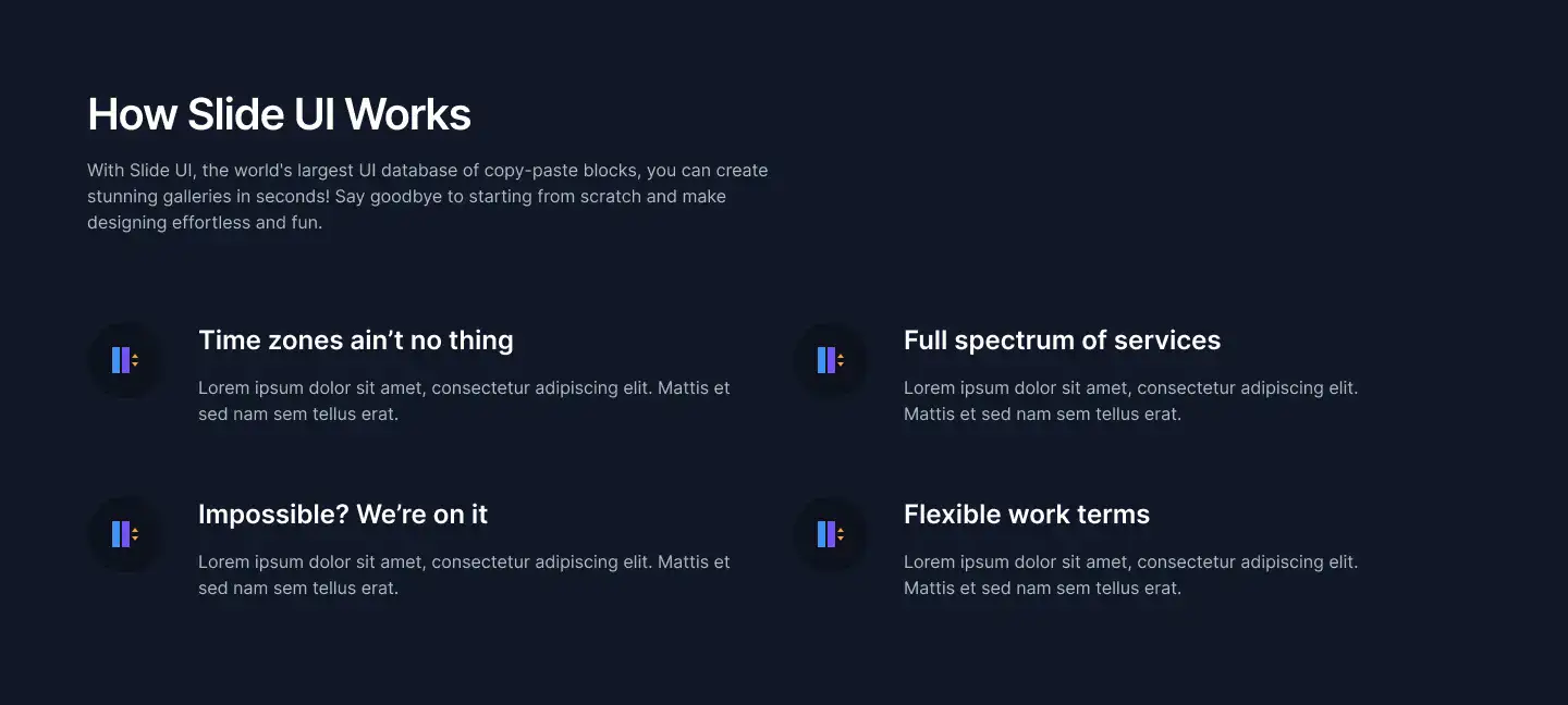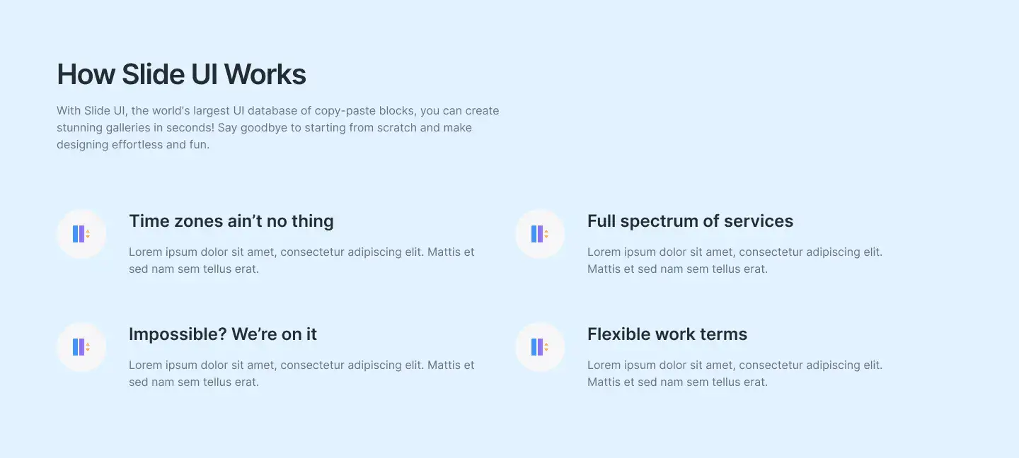 Grid or column-based layouts to highlight your best product features — fast, skimmable, and easy to reuse.