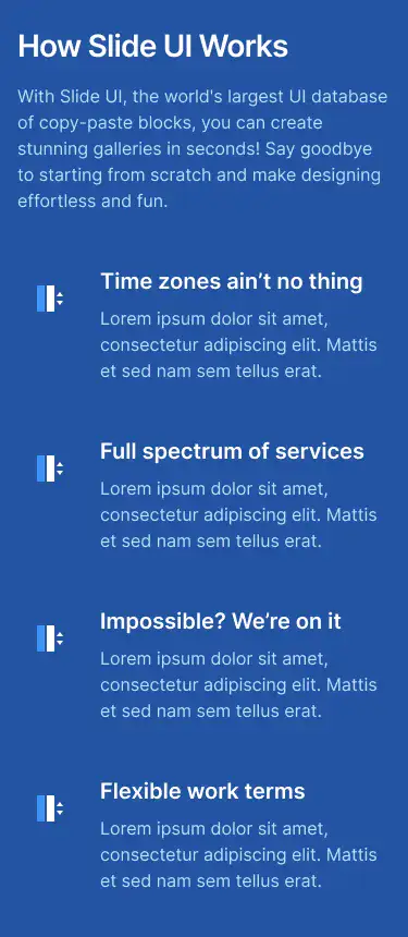 View Hero blocksShowcase processes, features, or onboarding in a clean 3–4 step layout. These are perfect for explaining complex ideas simply.