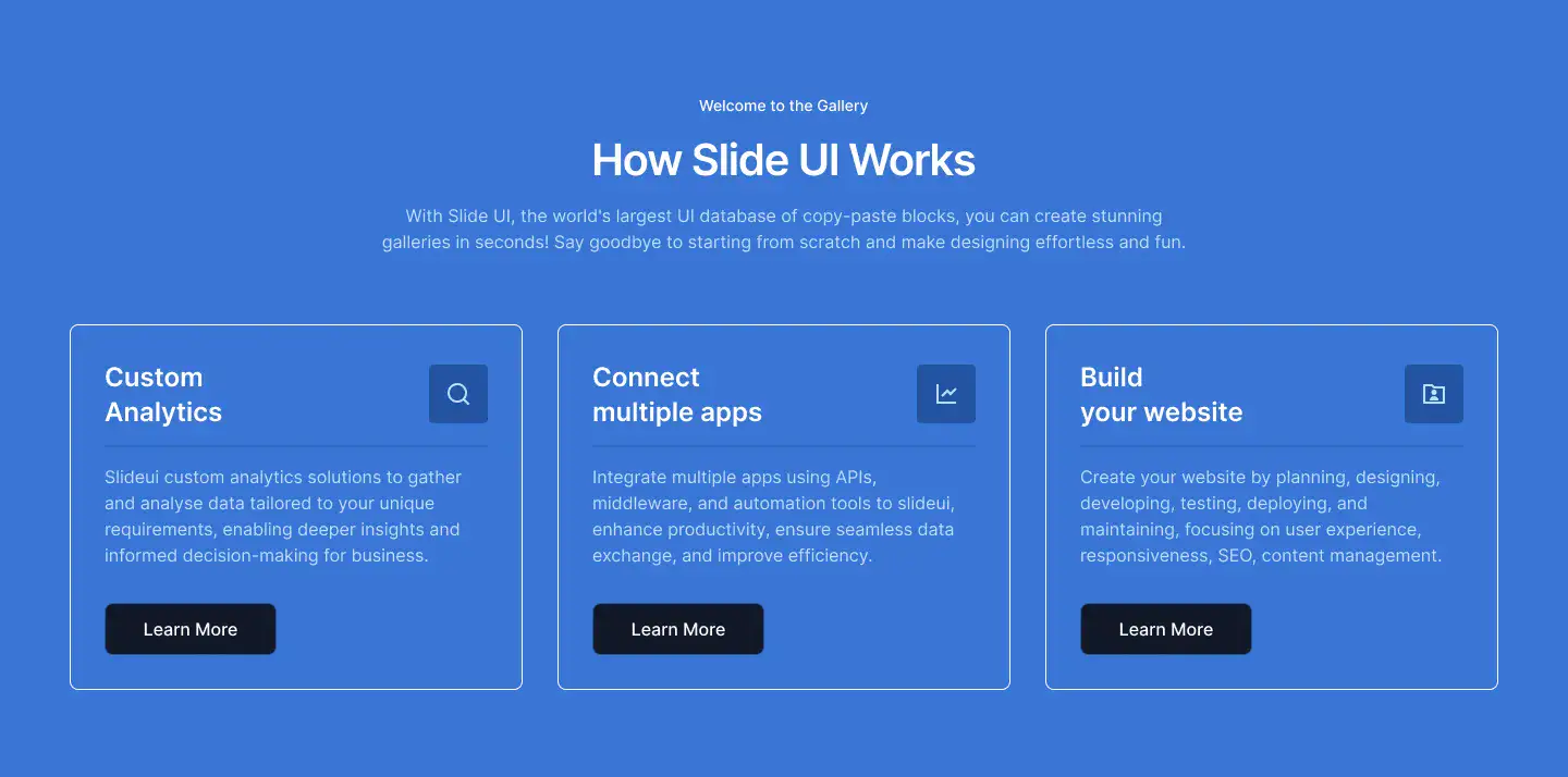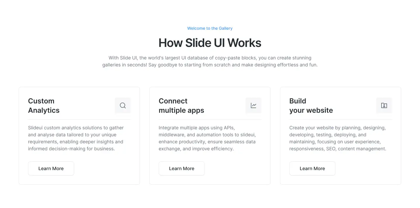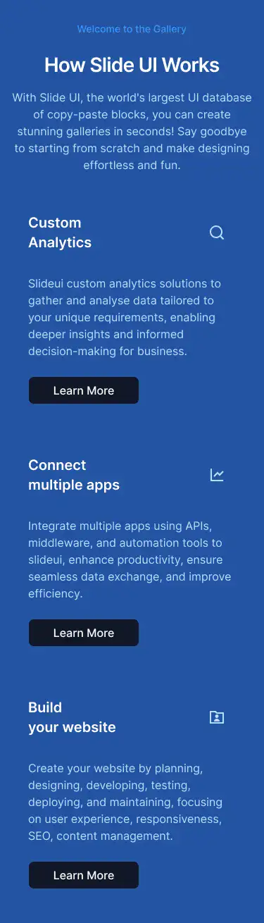 View How It Works blocksHighlight product advantages with icons, metrics, and comparison stats. Designed to build trust and speed up decision-making.