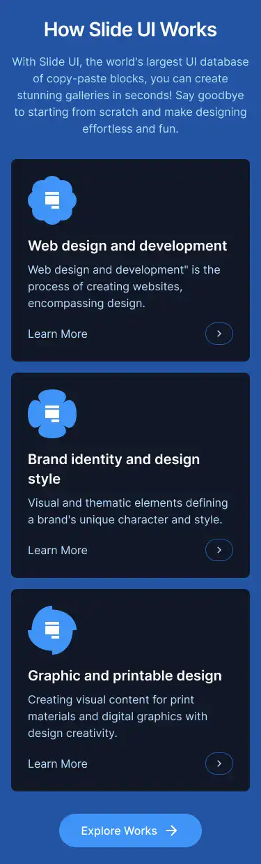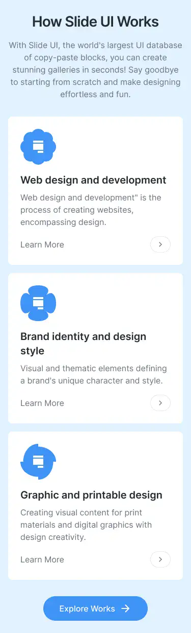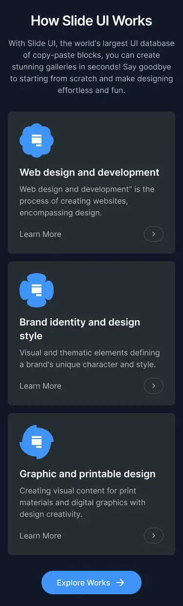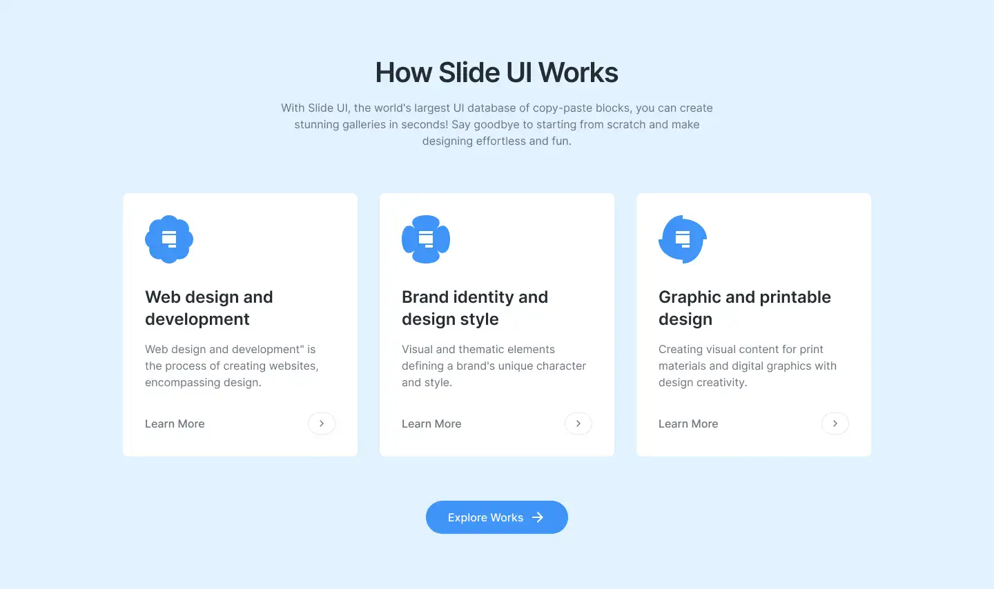 View Hero blocksShowcase processes, features, or onboarding in a clean 3–4 step layout. These are perfect for explaining complex ideas simply.