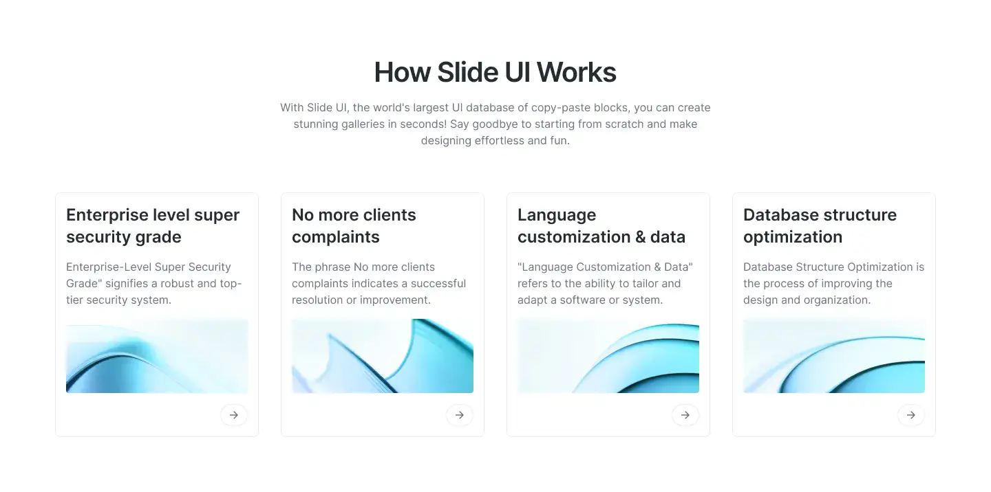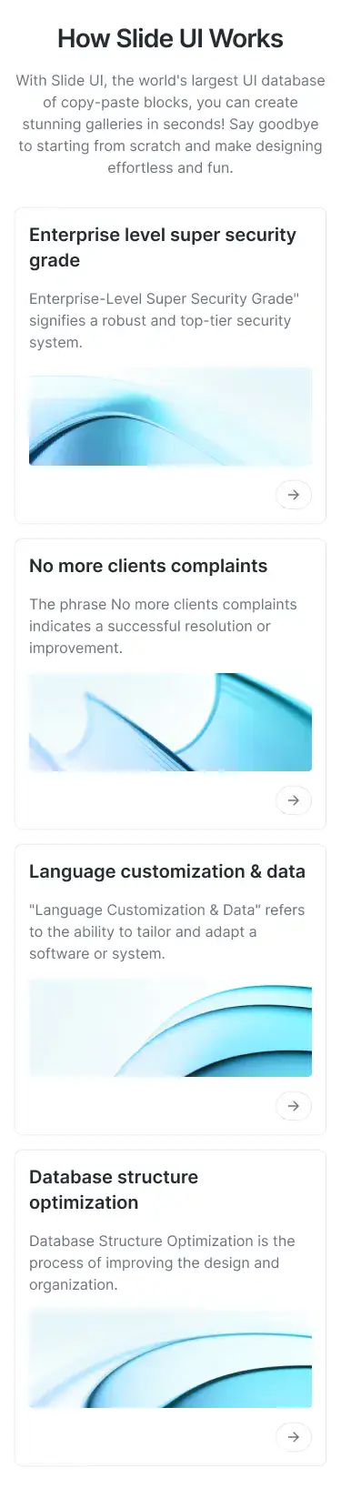 Grid or column-based layouts to highlight your best product features — fast, skimmable, and easy to reuse.