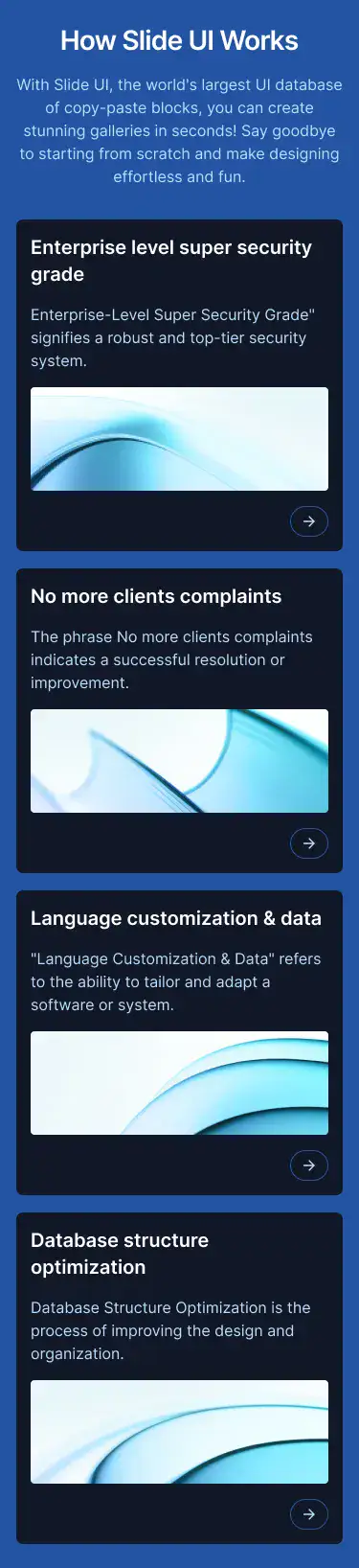 View Hero blocksShowcase processes, features, or onboarding in a clean 3–4 step layout. These are perfect for explaining complex ideas simply.