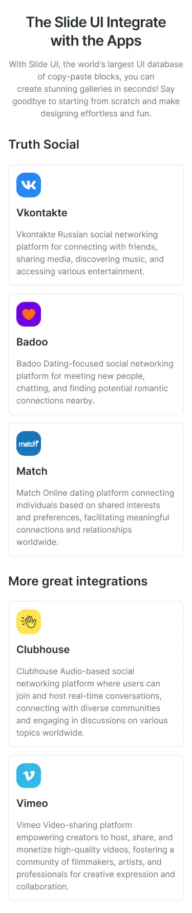 Embed or link social posts, profiles, or share buttons with clean, on-brand UI.