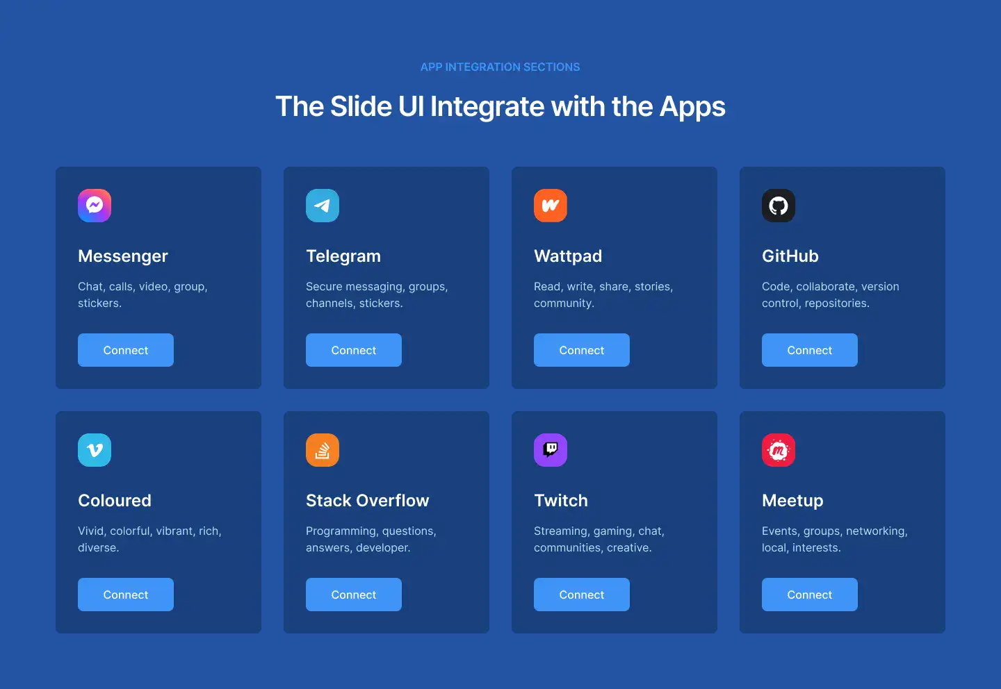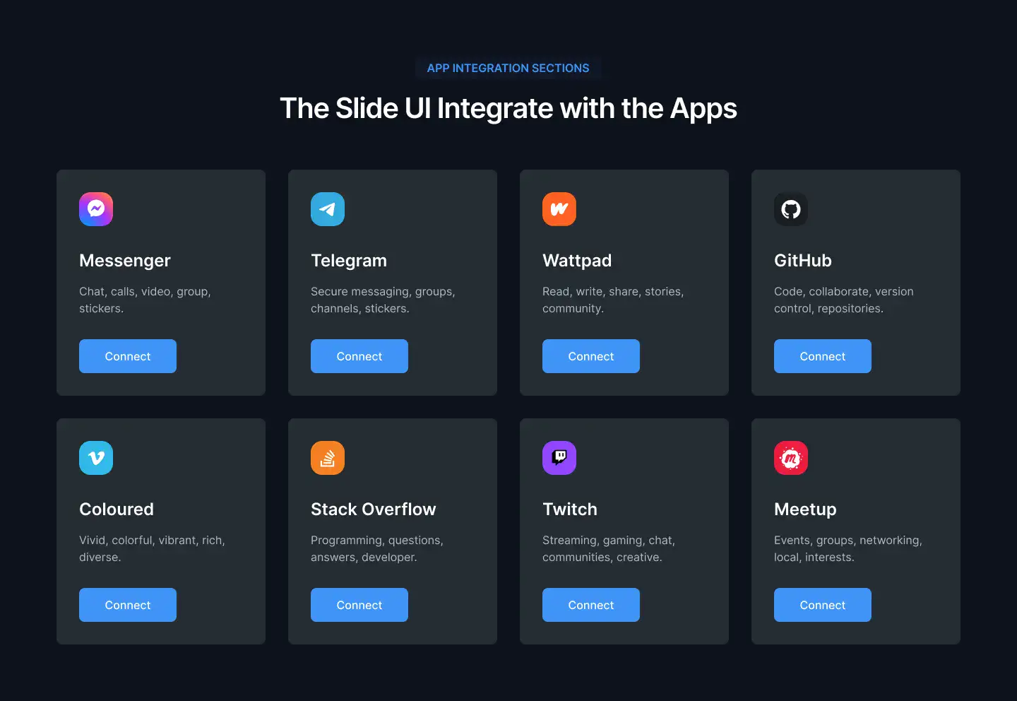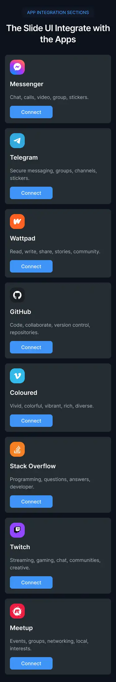 Integrations Layout for Figma — clean, themeable and responsive across Desktop, Tablet and Mobile. Includes Light, Dark and Accent modes for fast customisation. Ideal for Crypto, Energy, Healthcare.