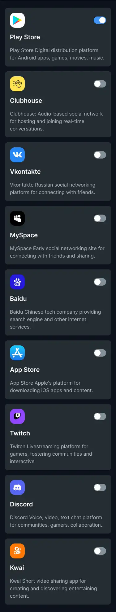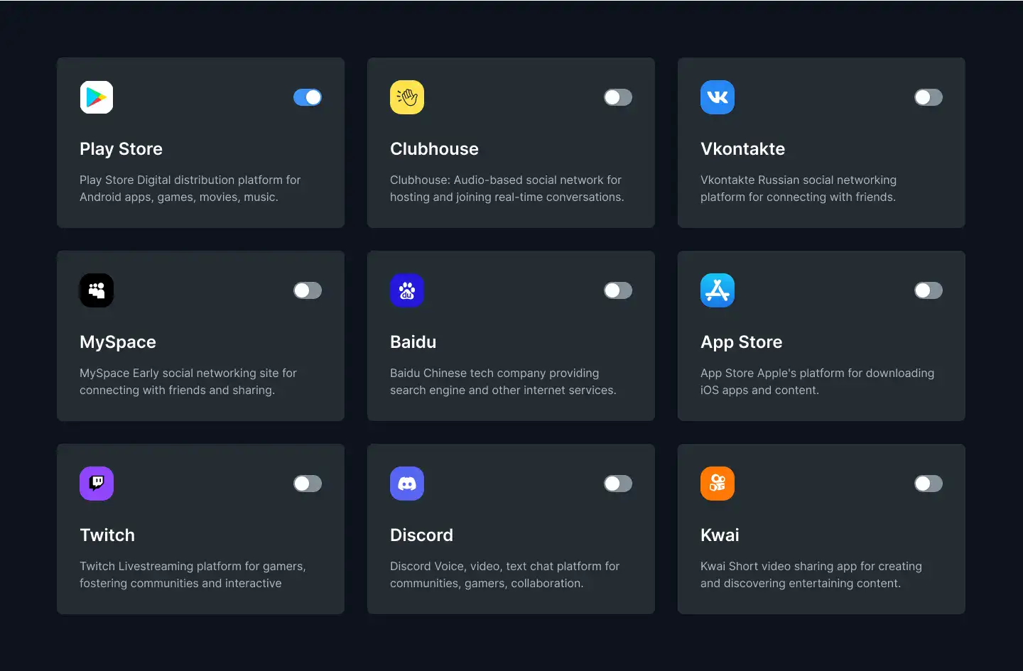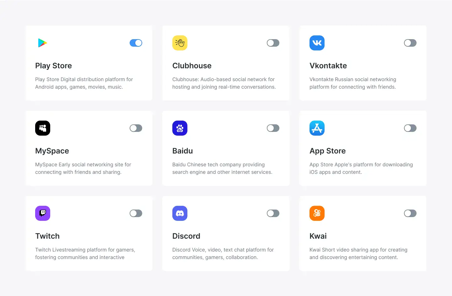 Showcase product integrations visually with logos, categories, and tool descriptions.