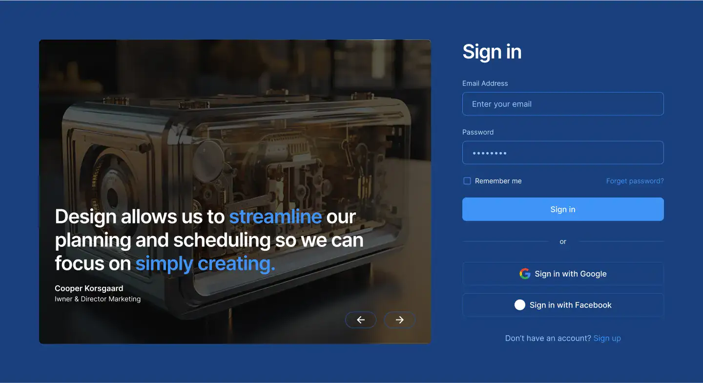 Authentication blocks built with conversion best practices. Clean, secure, and mobile-optimised.