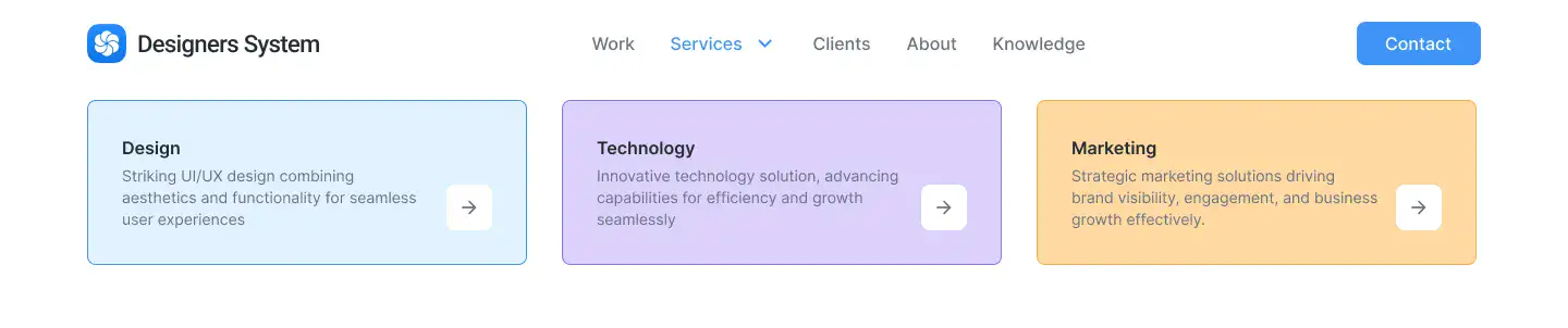 Beautiful navigation blocks — sticky headers, mega menus, mobile navs, and minimal top bars.