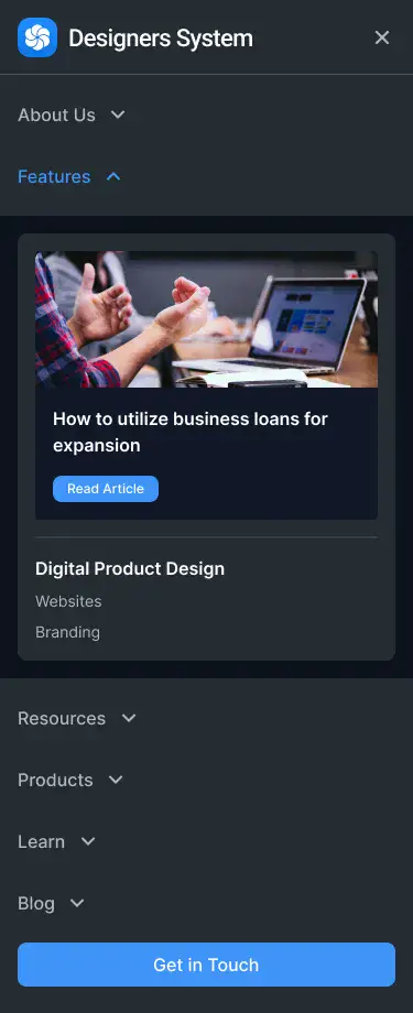 Navigation Layout for Figma — minimal, themeable and responsive across Desktop, Tablet and Mobile. Includes Light, Dark and Accent modes for fast customisation. Ideal for Agency, Automotive, Finance.