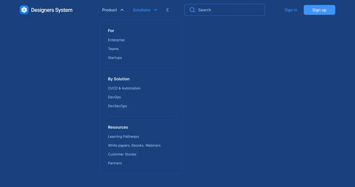 Beautiful navigation blocks — sticky headers, mega menus, mobile navs, and minimal top bars.